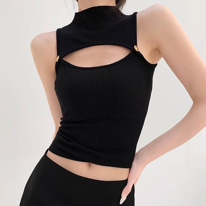 high neck sleeveless rib knit top la1535