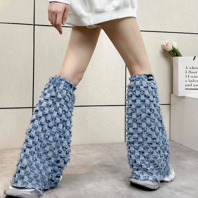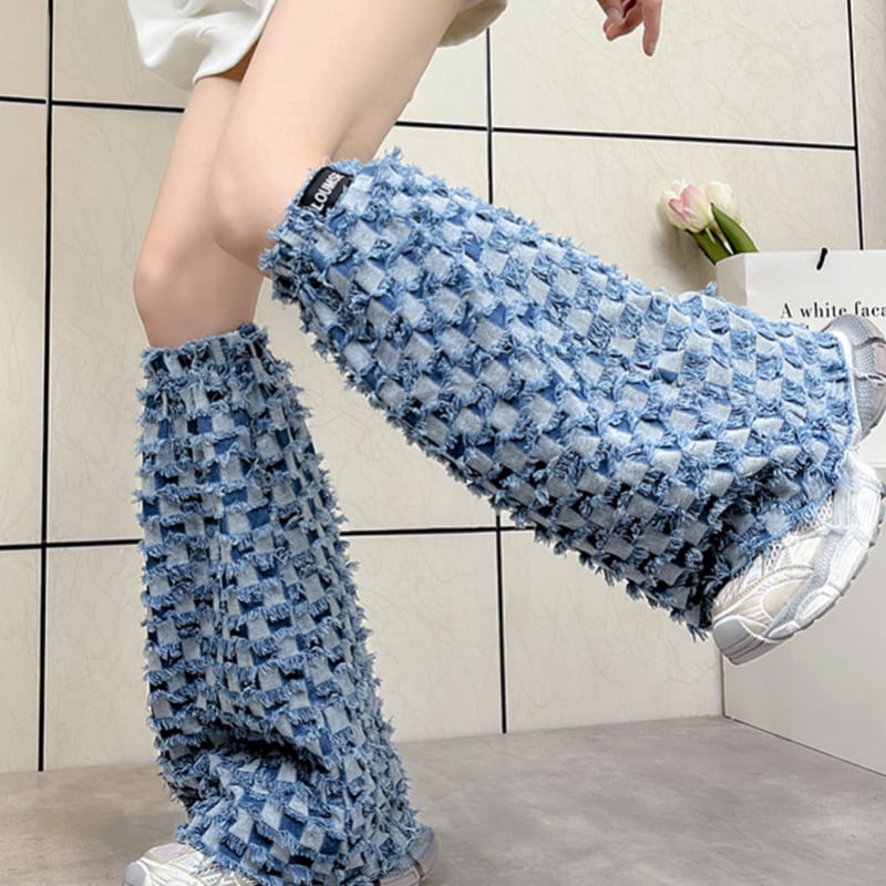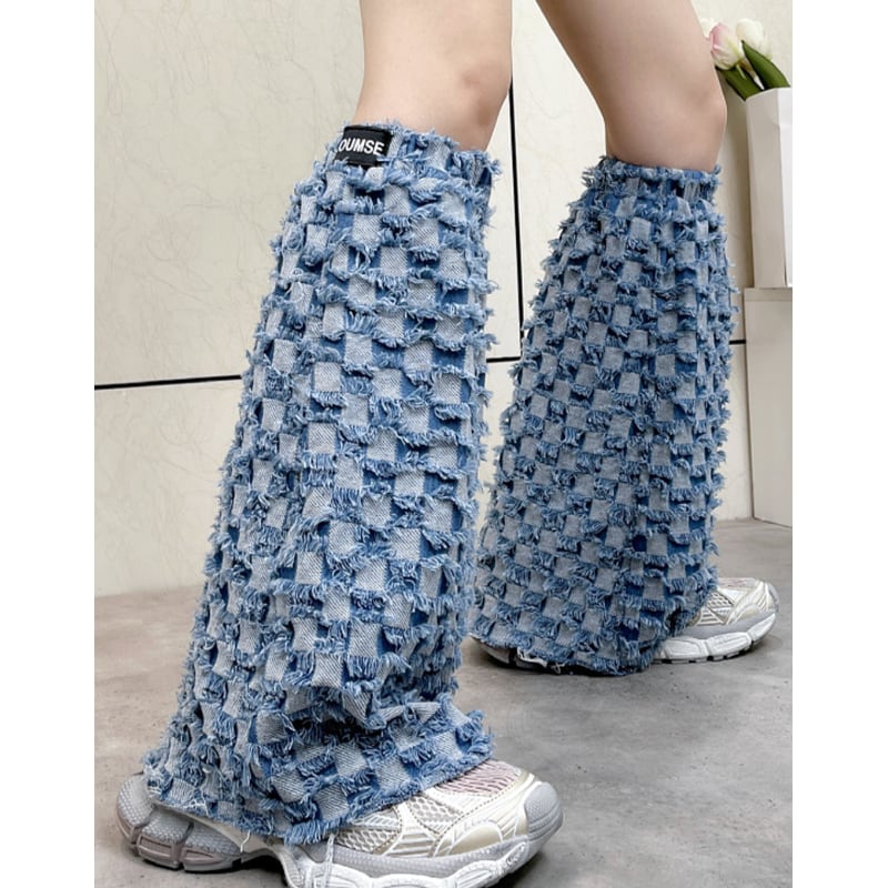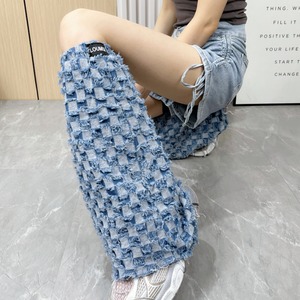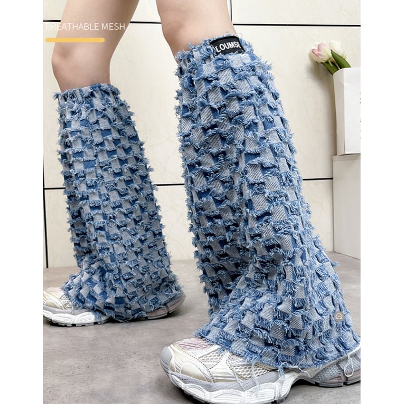 fringe-processed long-length wide-leg leg warmers made of denim material la1550
