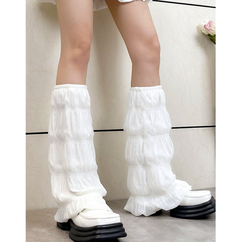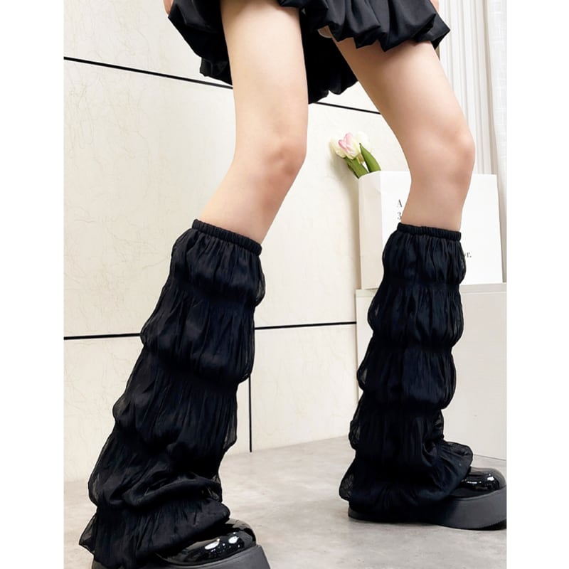 足を美しく演出するレッグウォーマー。軽やかな素材で、重ね着風のデザインがこなれた印象を与えます。スカートやミニワンピースとの相性抜群。デイリーユースはもちろん、特別な日のスタイリングにも活躍します。
