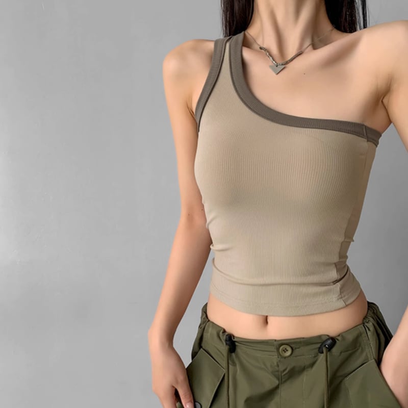 ワンショルダーデザインが洗練された印象を与えるクロップドトップ。リブニット素材が身体に優しくフィットし、スタイリッシュなシルエットを演出します。カジュアルなスタイルから、アクセサリーをプラスして少しドレスアップしたスタイルまで、幅広いコーディネートに活躍します。