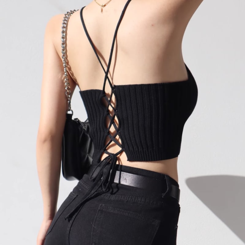 back cross design knit cropped top la1709