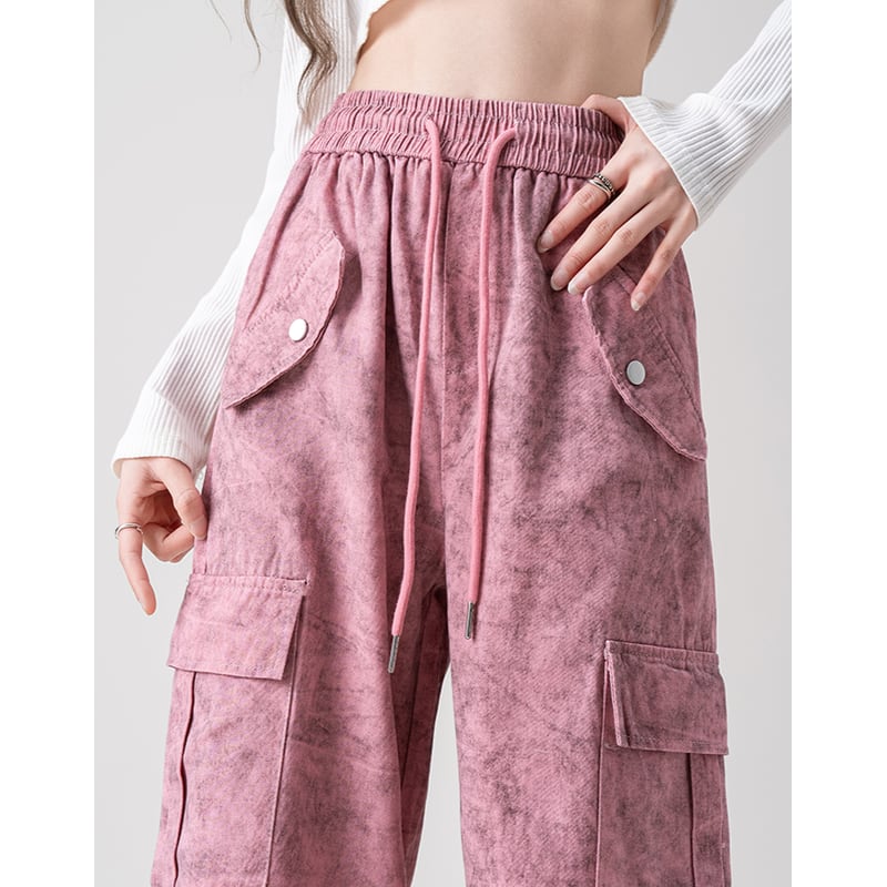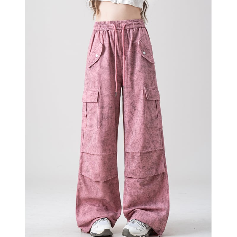 ワイドレッグのカーゴパンツは、ゆったりとしたシルエットとドローストリングウエストが特徴です。複数のポケットが実用性を高め、タウンユースからレジャーまで幅広いシーンで活躍します。着心地の良さとスタイリッシュなデザインを両立した、一枚でコーディネートが決まるアイテムです。
