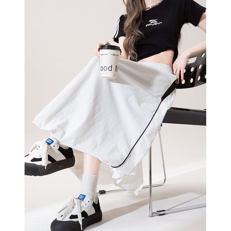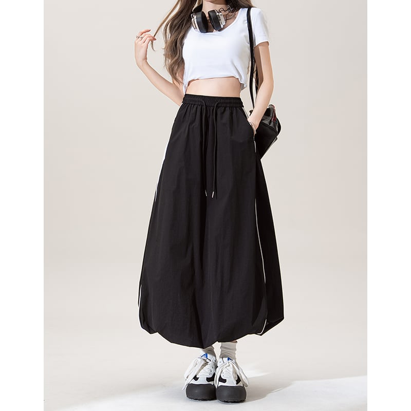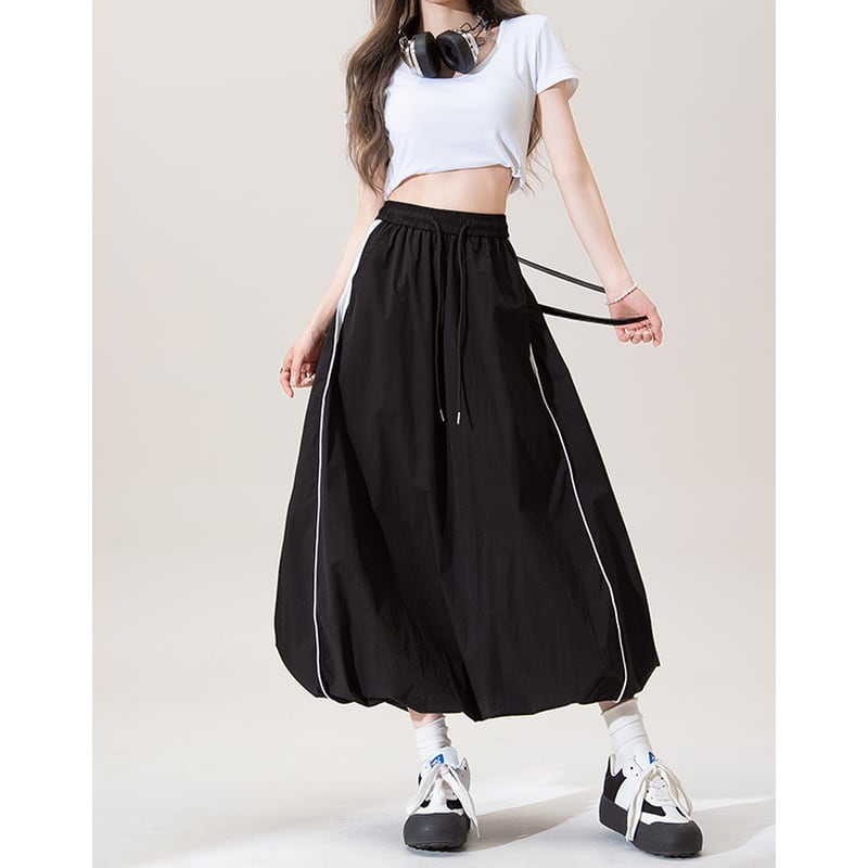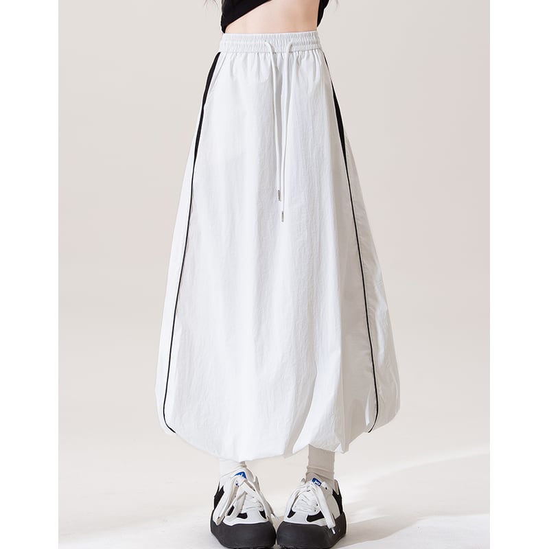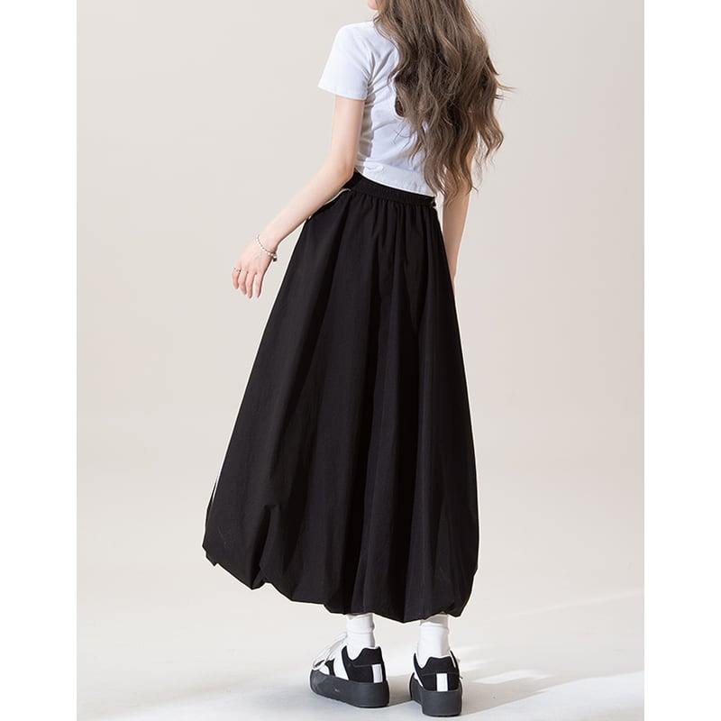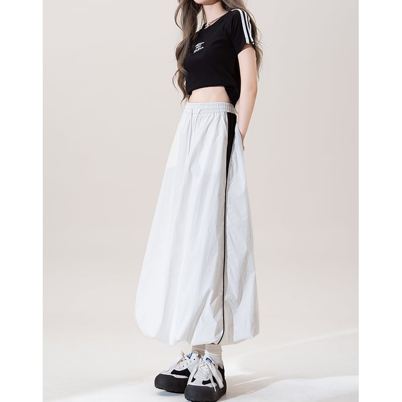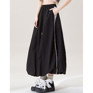 Aラインシルエットのマキシスカートは、サイドスリットが歩くたびに女性らしさを演出。ウエストはゴム仕様でリラックスした着心地を実現しつつ、すっきりとしたシルエットをキープします。カジュアルなスタイルから、少しドレスアップしたシーンまで幅広く活躍するアイテムです。