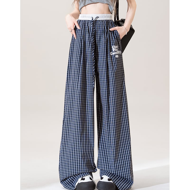 チェック柄のワイドパンツで、こなれたスタイルを演出しましょう。ハイウエストデザインとドローストリングで、スタイルアップ効果も抜群。カジュアルなチェック柄とゆったりとしたシルエットが、リラックス感と洗練さを兼ね備えています。どんなトップスとも合わせやすく、デイリーユースに最適です。
