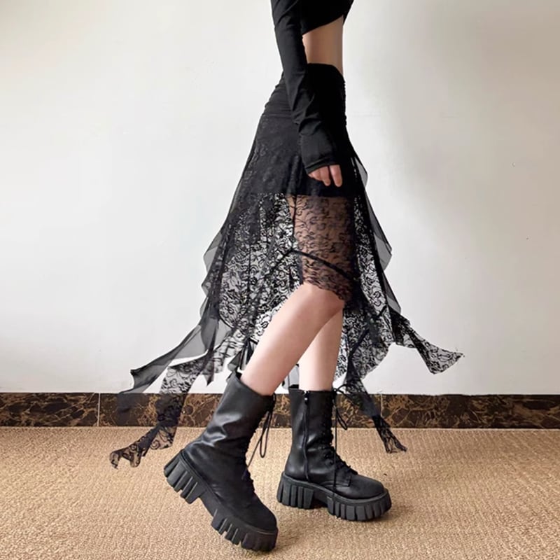 gothic lace sheer high-waist flared skirt la1764