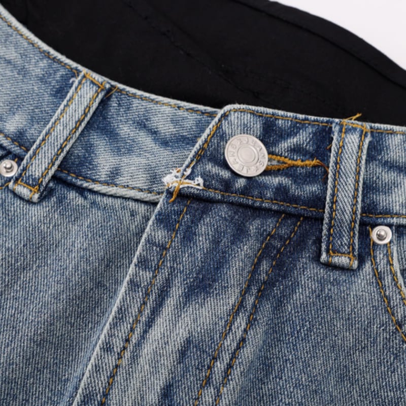 スタイルアップ効果抜群のデニムミニスカート。ハイウエストデザインで脚長効果も期待でき、アシンメトリーな裾が個性を演出します。シンプルなデザインながら、独特のカットが洗練された印象を与え、様々なトップスと合わせやすいのも魅力です。デイリーユースから特別な日まで、幅広いシーンで活躍すること間違いなしです。