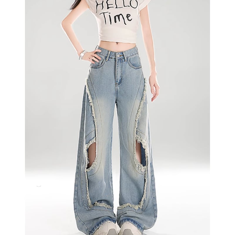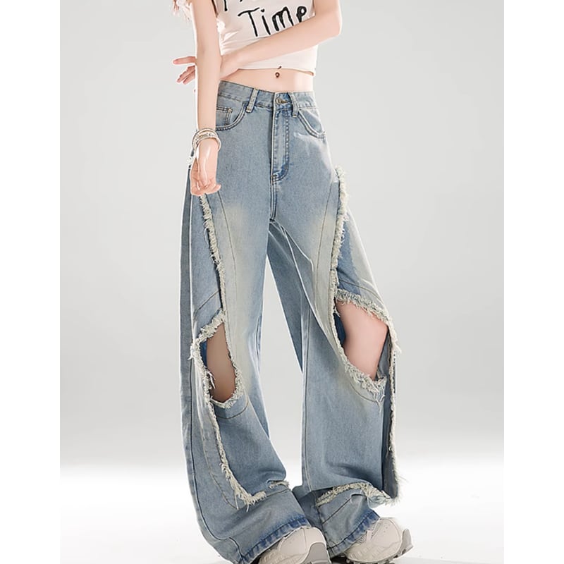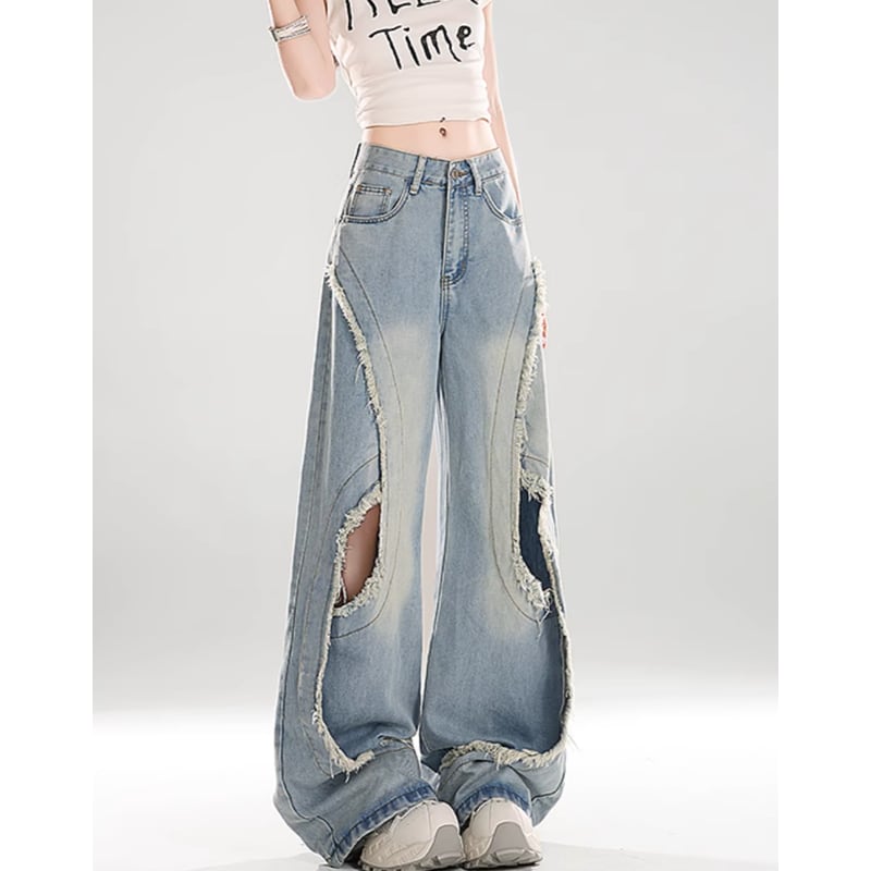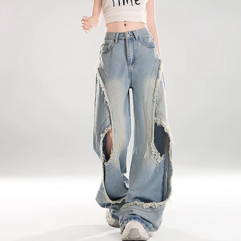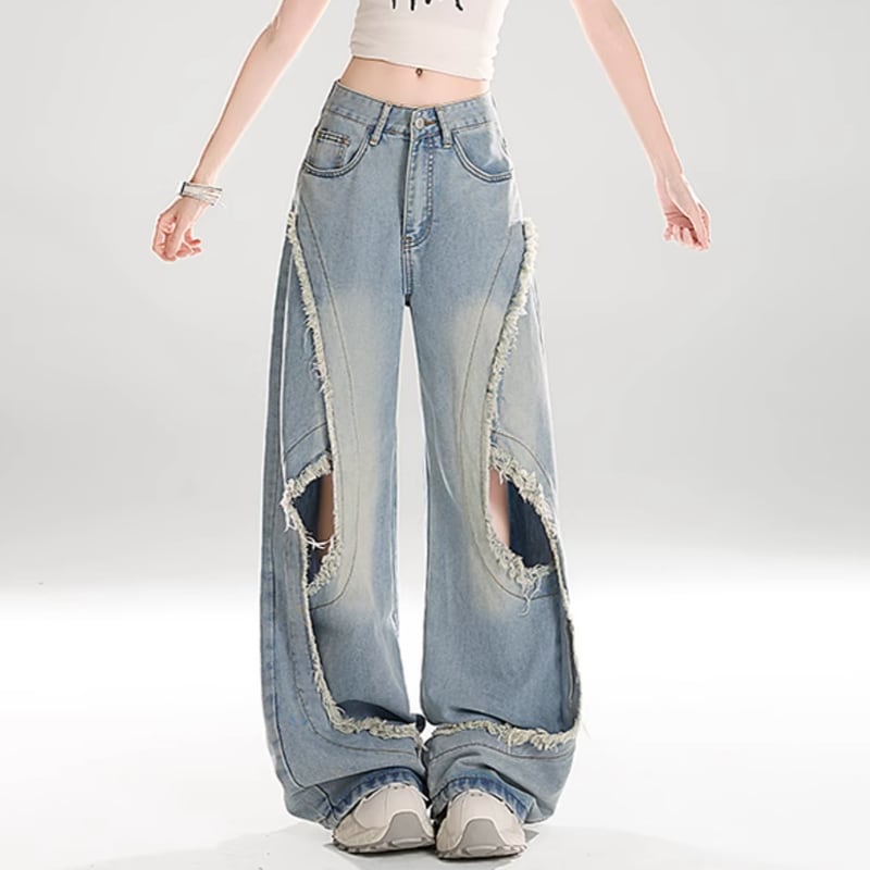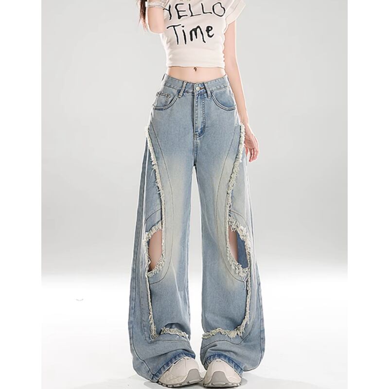 ハイウエストとワイドレッグシルエットが、スタイルアップ効果抜群の一本。大胆なダメージ加工が、個性を際立たせます。普段使いはもちろん、フェスやライブなどアクティブなシーンにも最適です。履くだけでこなれた雰囲気を演出できる、注目のデニムパンツです。