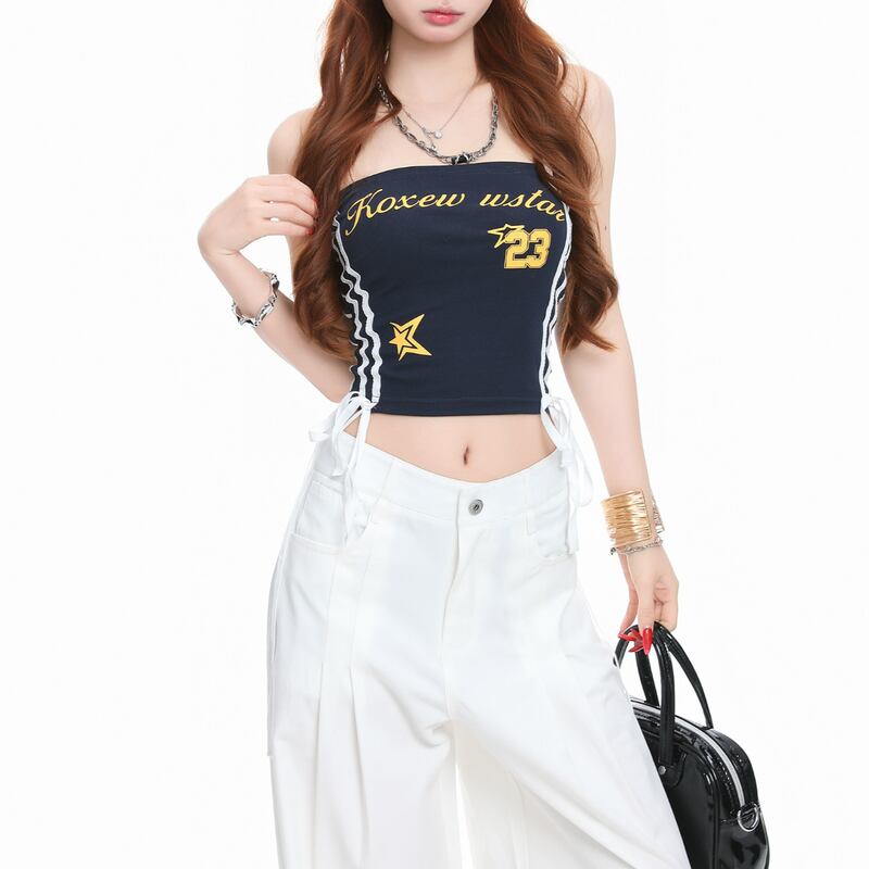 スター刺繍×ナンバープリントが目を引く、スポーティーなビスチェ風キャミトップス。