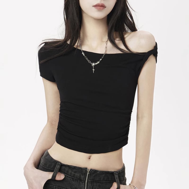 クロスネックデザインがポイントのオフショルダーリブニットトップ。肌触りの良い素材で、程よく体にフィットするシルエットが魅力です。カジュアルなスタイルから、アクセサリーをプラスしたきれいめスタイルまで、幅広いコーディネートに活躍します。デイリーユースにぴったりな一枚です。