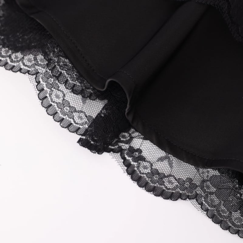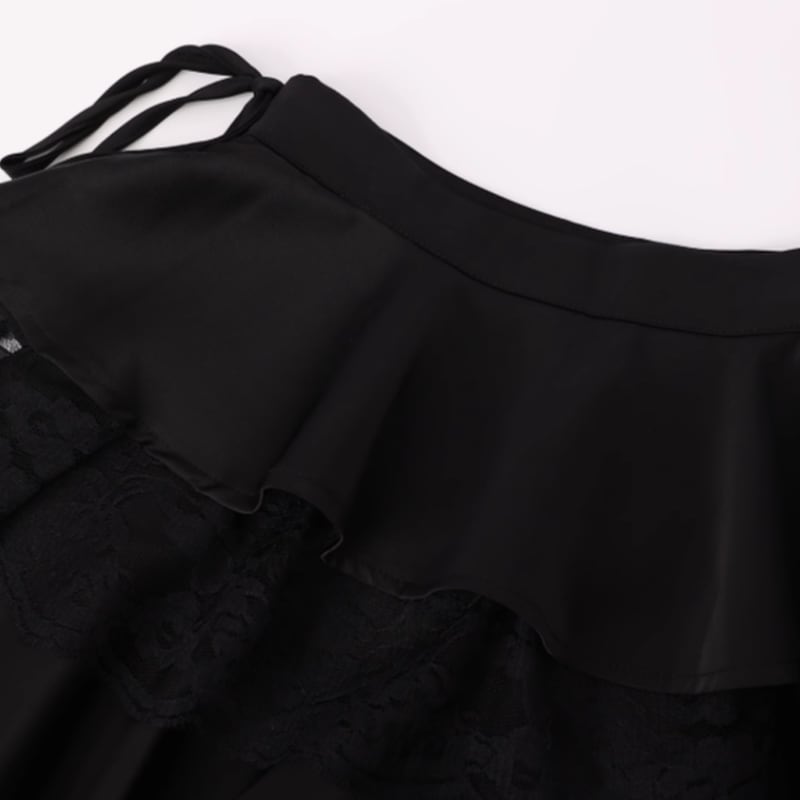 レイヤードデザインとウエストリボンが魅力的なスカートです。ティアード状のフリルと繊細なレースの組み合わせが、フェミニンでロマンティックな雰囲気を演出します。ウエストのリボンでシルエットを調整でき、様々なスタイルに合わせやすいのがポイントです。デートやパーティー、女子会など、特別な日に着こなしたい一枚です。