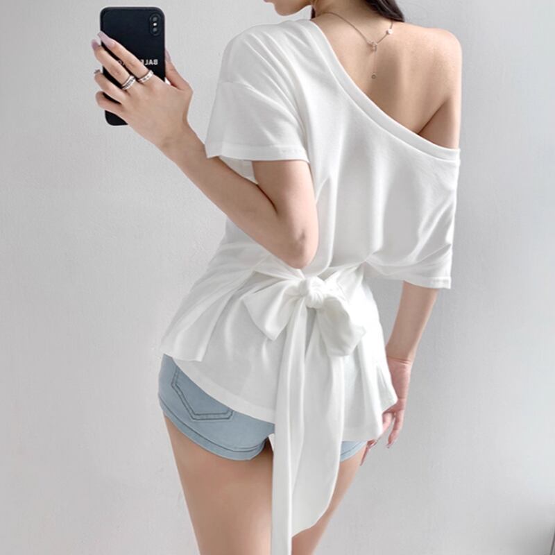 back ribbon design off-shoulder dolman sleeve cut-and-sew la1978