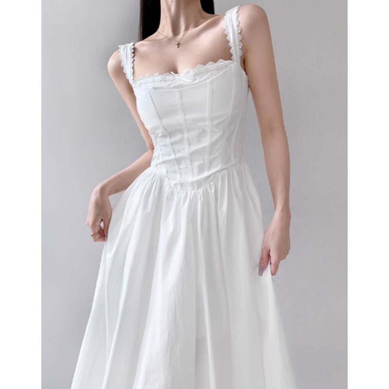 スクエアネックとAラインシルエットが美しい、一枚で着映えするキャミソールワンピース。繊細なレースがあしらわれたネックラインが、女性らしさを演出します。デイリーユースはもちろん、ちょっとしたお出かけにも最適です。シンプルながらも上品なデザインは、様々なシーンで活躍してくれるでしょう。