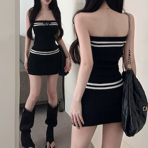 tight knit tube top skirt set la2016
