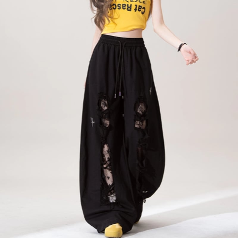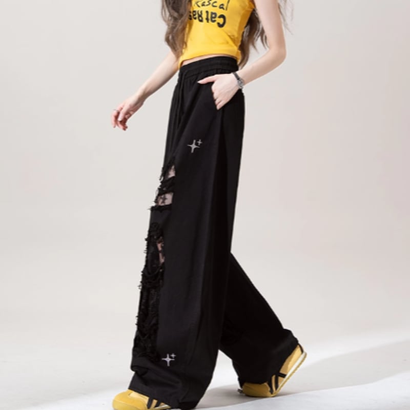 ハイウエストデザインとワイドレッグシルエットが特徴的なパンツ。大胆なダメージ加工と繊細なレースの組み合わせが、個性的でありながら洗練されたスタイルを演出します。ウエスト部分はゴム仕様なので、着心地も抜群。様々なトップスと合わせやすく、デイリーユースから特別な日まで活躍します。 【サイズ】 S:ウエスト62cm/ヒップ106cm/着丈101cm M:ウエスト66cm/ヒップ110cm/着丈102cm L:ウエスト70cm/ヒップ114cm/着丈103cm 【カラー】 ・ブラック ・ホワイト 【モデル】 身長:160cm 体重:85kg B/W:84/62 着用サイズ:S *Lavissyで人気のアイテムはこちら♪ https://www.lavissy-fashion.shop/categories/2816592 *新商品入荷中!/SALE情報をcheck https://www.lavissy-fashion.shop/ **ご購入前に必ずお読みください** https://www.lavissy-fashion.shop/blog/2020/07/05/231434 【お届けについて】 こちらの商品は海外店舗より直接発送となる為、 ご入金から10日〜3週間前後で発送致します。 ◆注意事項 ・タイミングによっては 商品在庫切れにより 注文キャンセルとさせていただく恐れもございますので、予めご了承くださいませ。 ・こちらは輸入品となります。日本製とは検品基準が異なる為、 新品未使用品でもごくわずかな汚れや ほつれがある場合もございます。 ・仕入れ工場を変えることがあるため、記載サイズと若干異なる場合がございます。 ・商品の色味は、お手持ちのスマートフォンの画面によって実物と若干異なる場合がございます。 ・イメージ違いやサイズ交換等、お客さまご都合による交換、返品は対応出来かねます。 【お支払方法】 ・クレジットカード決済 (VISA/Master/JCB/AMERICAN EXPRESS) ・キャリア決済 (docomo/au/SoftBank/Y!mobile/UQmobile) ・銀行振込 (三井住友銀行) ・コンビニ決済・Pay-easy ・後払い決済 ーーーーーーーーーーーーーーーーーーーー *Lavissy Instagram https://www.instagram.com/lavissy_official
