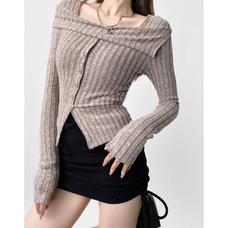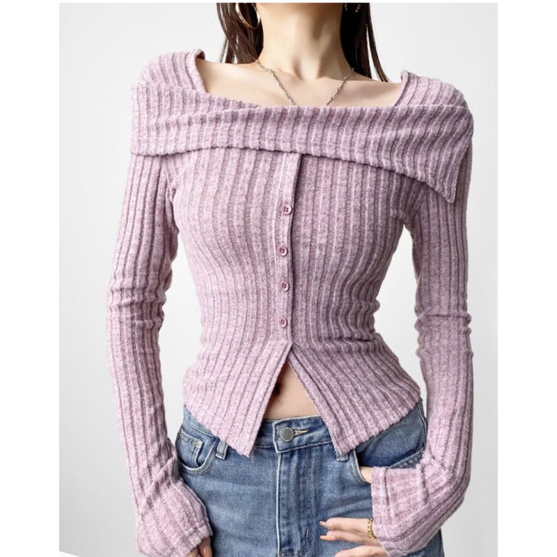 オフショルダーのデザインが女性らしさを演出するニットトップス。上品なリブ編みが、着こなしに洗練された雰囲気をプラスします。ボタンで開閉できるフロントデザインが、着脱しやすく、スタイルのバリエーションを広げてくれます。ロングスリーブで、肌寒い季節にも暖かく過ごせます。カジュアルなデニムスタイルから、スカートを合わせたフェミニンなスタイルまで、幅広いコーディネートに活躍します。 【サイズ】 S:肩幅34cm/バスト72cm/袖丈62cm/着丈48cm M:肩幅35cm/バスト76cm/袖丈63cm/着丈49cm L:肩幅36cm/バスト80cm/袖丈64cm/着丈50cm 【カラー】 ・ブラック ・ダークグレー ・グレーベージュ ・ブラウン ・ピンク ・ライラック *Lavissyで人気のアイテムはこちら♪ https://www.lavissy-fashion.shop/categories/2816592 *新商品入荷中!/SALE情報をcheck https://www.lavissy-fashion.shop/ **ご購入前に必ずお読みください** https://www.lavissy-fashion.shop/blog/2020/07/05/231434 【お届けについて】 こちらの商品は海外店舗より直接発送となる為、 ご入金から10日〜3週間前後で発送致します。 ◆注意事項 ・タイミングによっては 商品在庫切れにより 注文キャンセルとさせていただく恐れもございますので、予めご了承くださいませ。 ・こちらは輸入品となります。日本製とは検品基準が異なる為、 新品未使用品でもごくわずかな汚れや ほつれがある場合もございます。 ・仕入れ工場を変えることがあるため、記載サイズと若干異なる場合がございます。 ・商品の色味は、お手持ちのスマートフォンの画面によって実物と若干異なる場合がございます。 ・イメージ違いやサイズ交換等、お客さまご都合による交換、返品は対応出来かねます。 【お支払方法】 ・クレジットカード決済 (VISA/Master/JCB/AMERICAN EXPRESS) ・キャリア決済 (docomo/au/SoftBank/Y!mobile/UQmobile) ・銀行振込 (三井住友銀行) ・コンビニ決済・Pay-easy ・後払い決済 ーーーーーーーーーーーーーーーーーーーー *Lavissy Instagram https://www.instagram.com/lavissy_official