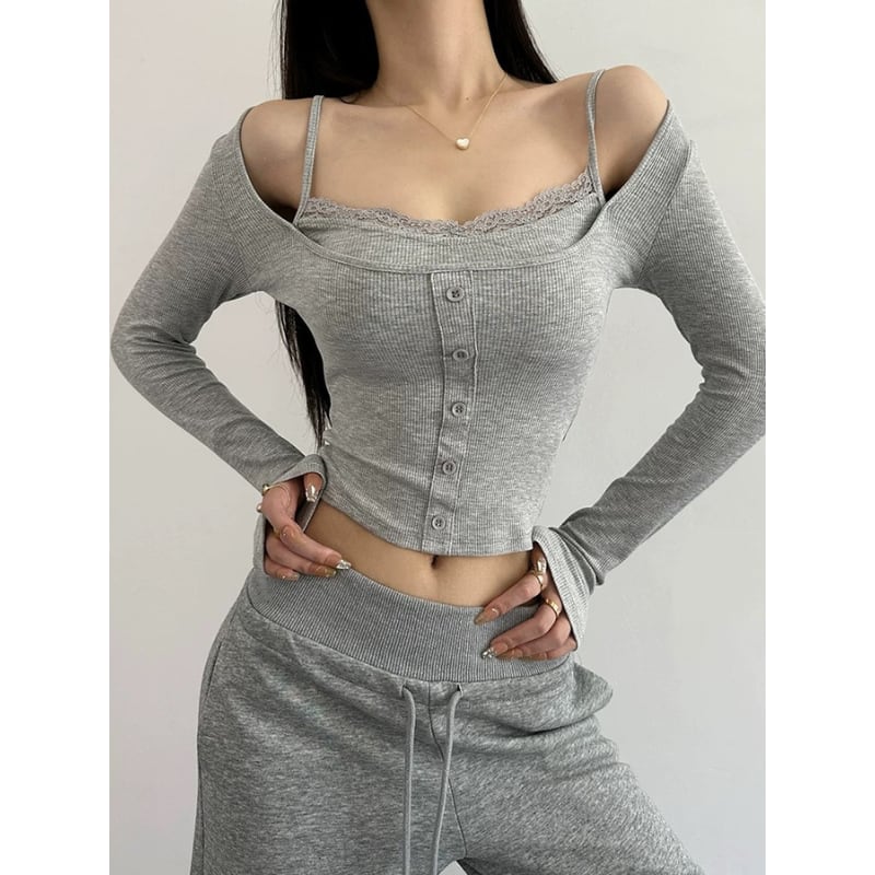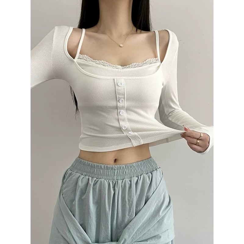 クロップド丈のリブトップス。 肩落ちデザインにレイヤード風キャミを重ねたようなディテールで、胸元には繊細なレースがあしらわれています。 フロントのボタンがアクセントになり、シンプルなスタイリングにも個性をプラスします。 【サイズ】 S:肩幅33cm/バスト66cm/袖丈52cm/着丈52cm M:肩幅34cm/バスト70cm/袖丈53cm/着丈53cm L:肩幅35cm/バスト74cm/袖丈54cm/着丈54cm 【カラー】 ・グレー ・ホワイト 【モデル】 身長:165cm B/W:80/58 着用サイズ:S *Lavissyで人気のアイテムはこちら♪ https://www.lavissy-fashion.shop/categories/2816592 *新商品入荷中!/SALE情報をcheck https://www.lavissy-fashion.shop/ **ご購入前に必ずお読みください** https://www.lavissy-fashion.shop/blog/2020/07/05/231434 【お届けについて】 こちらの商品は海外店舗より直接発送となる為、 ご入金から10日〜3週間前後で発送致します。 ◆注意事項 ・タイミングによっては 商品在庫切れにより 注文キャンセルとさせていただく恐れもございますので、予めご了承くださいませ。 ・こちらは輸入品となります。日本製とは検品基準が異なる為、 新品未使用品でもごくわずかな汚れや ほつれがある場合もございます。 ・仕入れ工場を変えることがあるため、記載サイズと若干異なる場合がございます。 ・商品の色味は、お手持ちのスマートフォンの画面によって実物と若干異なる場合がございます。 ・イメージ違いやサイズ交換等、お客さまご都合による交換、返品は対応出来かねます。 【お支払方法】 ・クレジットカード決済 (VISA/Master/JCB/AMERICAN EXPRESS) ・キャリア決済 (docomo/au/SoftBank/Y!mobile/UQmobile) ・銀行振込 (三井住友銀行) ・コンビニ決済・Pay-easy ・後払い決済 ーーーーーーーーーーーーーーーーーーーー *Lavissy Instagram https://www.instagram.com/lavissy_official