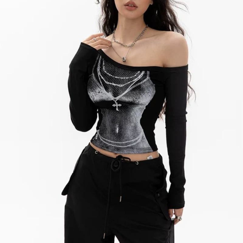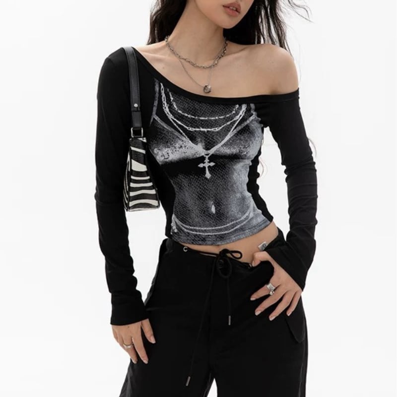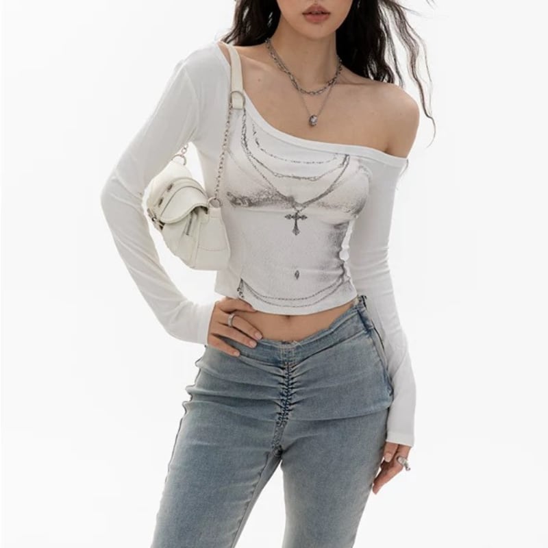 アシンメトリーなオフショルダーで首元をすっきりと見せるトップス。 フロントにはクロスモチーフの大胆なプリントが施されています。 ボディラインに沿ったフィット感で、スタイリッシュな雰囲気を演出します。 【サイズ】 S:バスト74~cm/袖丈62cm/着丈46cm M:バスト78~cm/袖丈63cm/着丈47cm L:バスト82~cm/袖丈64cm/着丈48cm 【カラー】 ・ブラック ・ホワイト 【素材】 ・コットン *Lavissyで人気のアイテムはこちら♪ https://www.lavissy-fashion.shop/categories/2816592 *新商品入荷中!/SALE情報をcheck https://www.lavissy-fashion.shop/ **ご購入前に必ずお読みください** https://www.lavissy-fashion.shop/blog/2020/07/05/231434 【お届けについて】 こちらの商品は海外店舗より直接発送となる為、 ご入金から10日〜3週間前後で発送致します。 ◆注意事項 ・タイミングによっては 商品在庫切れにより 注文キャンセルとさせていただく恐れもございますので、予めご了承くださいませ。 ・こちらは輸入品となります。日本製とは検品基準が異なる為、 新品未使用品でもごくわずかな汚れや ほつれがある場合もございます。 ・仕入れ工場を変えることがあるため、記載サイズと若干異なる場合がございます。 ・商品の色味は、お手持ちのスマートフォンの画面によって実物と若干異なる場合がございます。 ・イメージ違いやサイズ交換等、お客さまご都合による交換、返品は対応出来かねます。 【お支払方法】 ・クレジットカード決済 (VISA/Master/JCB/AMERICAN EXPRESS) ・キャリア決済 (docomo/au/SoftBank/Y!mobile/UQmobile) ・銀行振込 (三井住友銀行) ・コンビニ決済・Pay-easy ・後払い決済 ーーーーーーーーーーーーーーーーーーーー *Lavissy Instagram https://www.instagram.com/lavissy_official