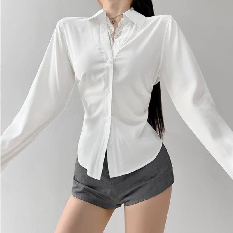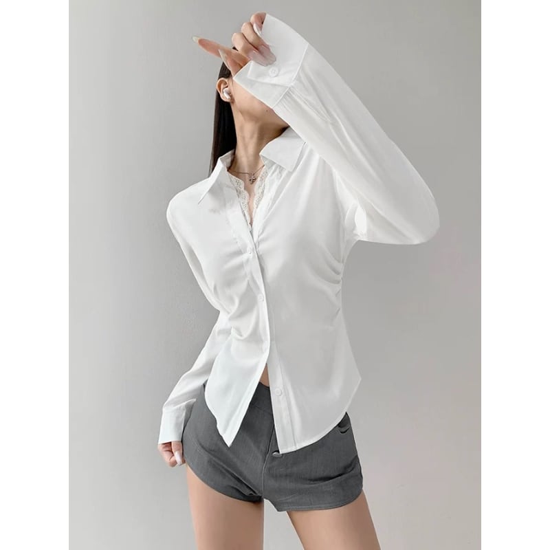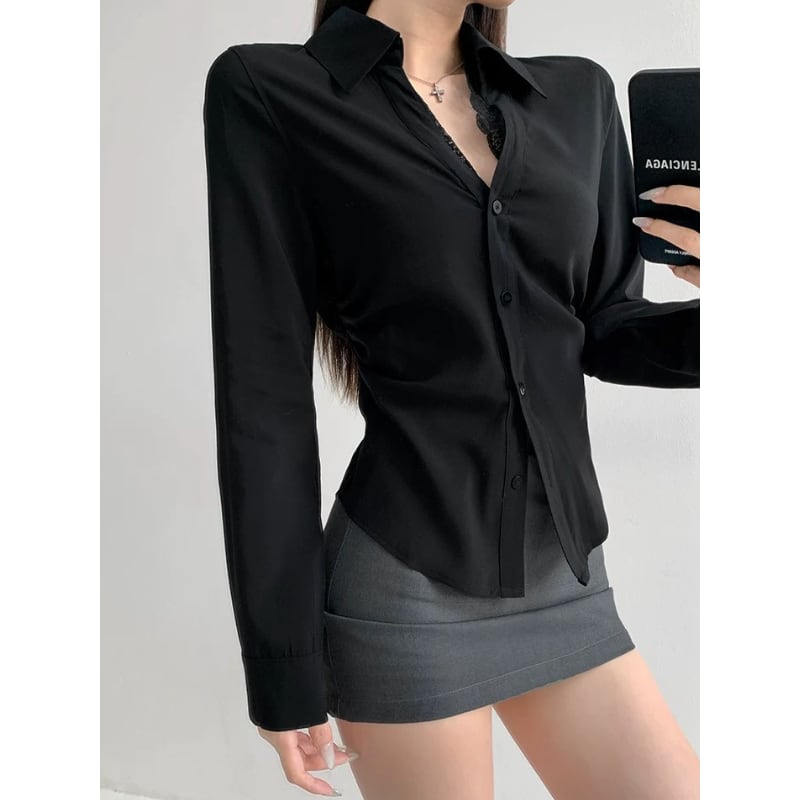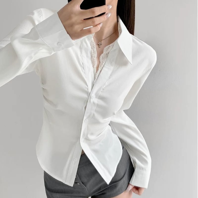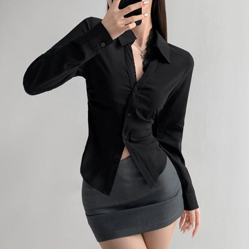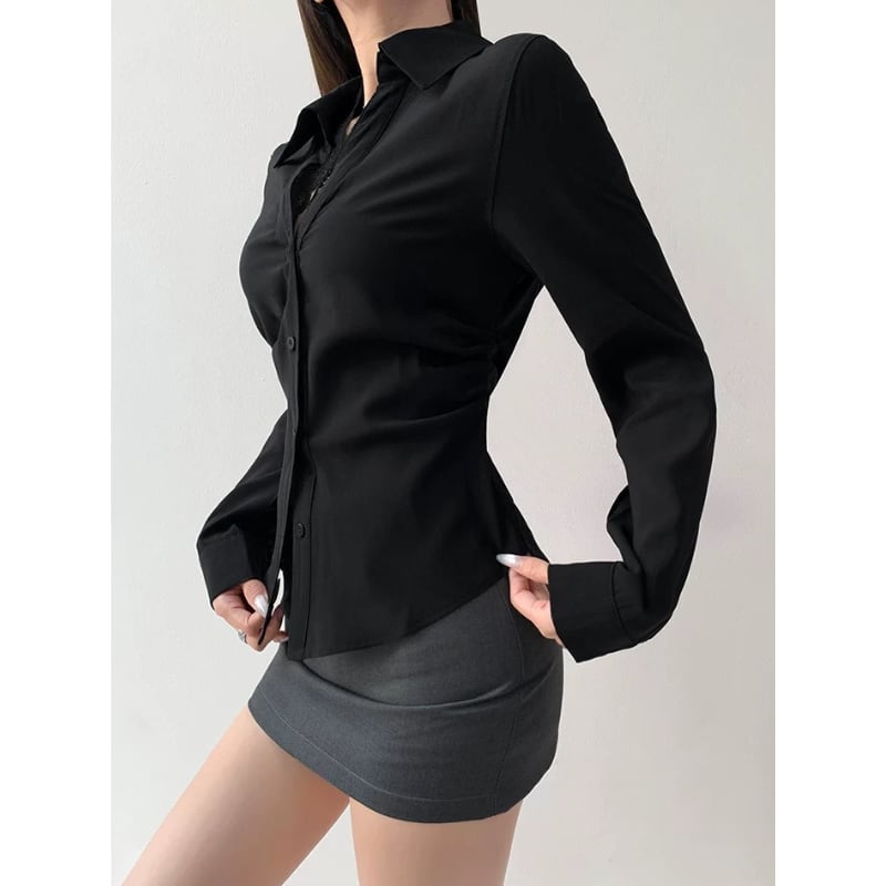 ボディラインに沿うシルエットで女性らしさを引き立てるシャツです。