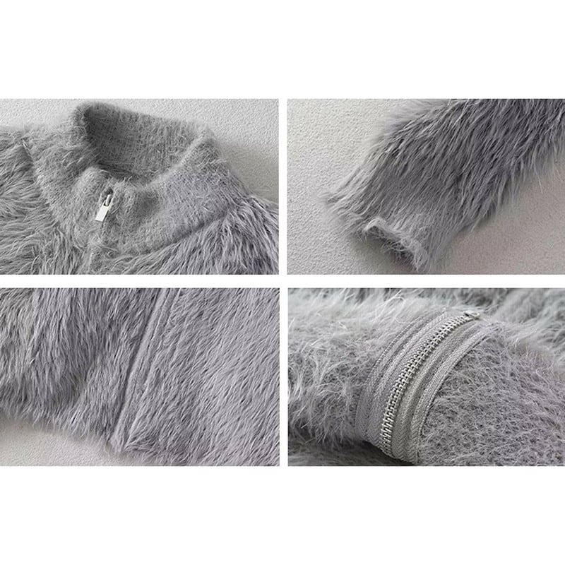 スタンドカラーとファスナーデザインが洗練された印象のジップアップニットトップスです。