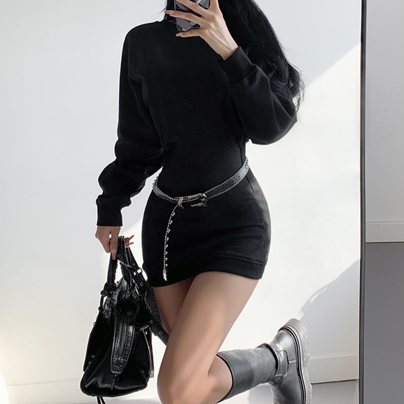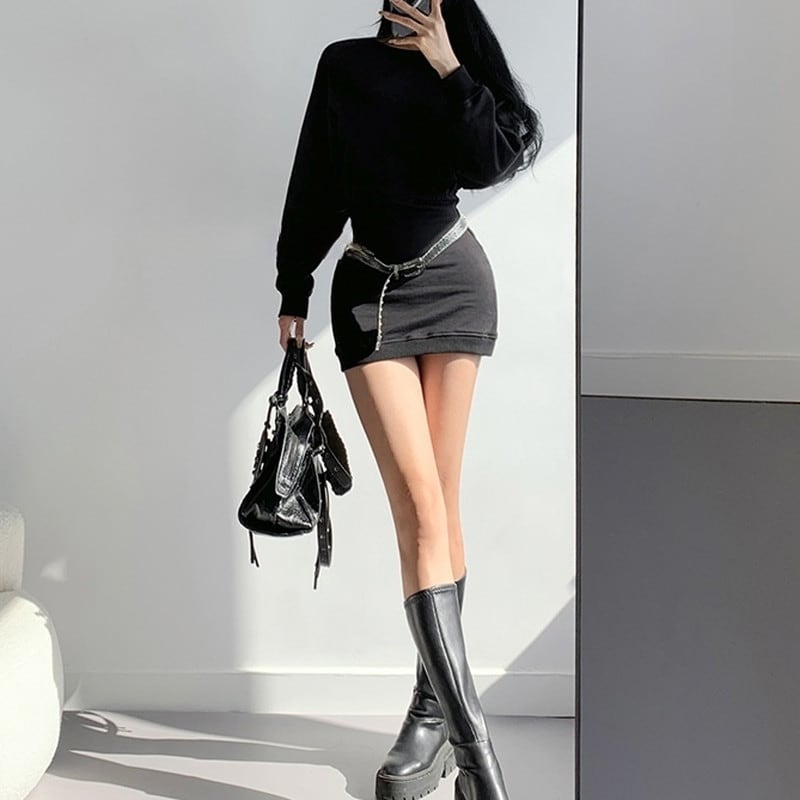 カジュアルなスウェット素材でありながら、ミニ丈とボディコンシルエットで女性らしさを演出。