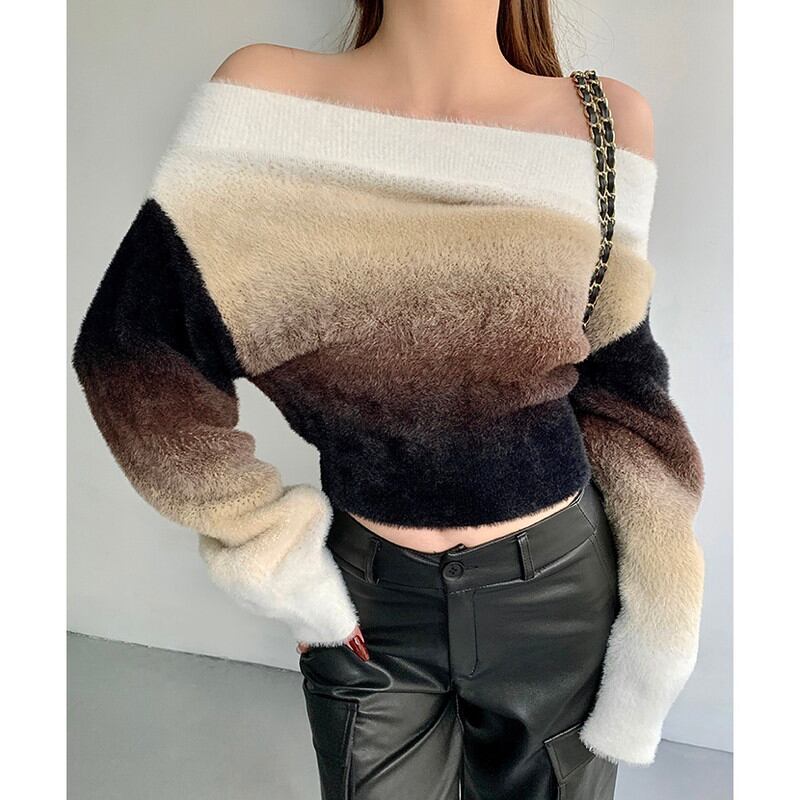 グラデーションが目を惹くクロップ丈モヘアニットです。 オフショルダーデザインでトレンド感あふれる着こなしが叶います。 グラデーションカラーがコーディネートに奥行きを与え、シンプルなボトムスと合わせるだけでおしゃれなスタイルが完成します。 普段使いからデートまで、幅広いシーンで活躍するアイテムです。 【サイズ】 S:バスト86cm/袖丈58cm/着丈47cm M:バスト90cm/袖丈59cm/着丈48cm 【カラー】 ・ブラック×ブラウン ・ホワイト×ベージュ ・ホワイト×イエロー 【モデル】 身長:164cm 体重:47kg B/W:80/60 着用サイズ:S *Lavissyで人気のアイテムはこちら♪ https://www.lavissy-fashion.shop/categories/2816592 *新商品入荷中!/SALE情報をcheck https://www.lavissy-fashion.shop/ **ご購入前に必ずお読みください** https://www.lavissy-fashion.shop/blog/2020/07/05/231434 【お届けについて】 こちらの商品は海外店舗より直接発送となる為、 ご入金から10日〜3週間前後で発送致します。 ◆注意事項 ・タイミングによっては 商品在庫切れにより 注文キャンセルとさせていただく恐れもございますので、予めご了承くださいませ。 ・こちらは輸入品となります。日本製とは検品基準が異なる為、 新品未使用品でもごくわずかな汚れや ほつれがある場合もございます。 ・仕入れ工場を変えることがあるため、記載サイズと若干異なる場合がございます。 ・商品の色味は、お手持ちのスマートフォンの画面によって実物と若干異なる場合がございます。 ・イメージ違いやサイズ交換等、お客さまご都合による交換、返品は対応出来かねます。 【お支払方法】 ・クレジットカード決済 (VISA/Master/JCB/AMERICAN EXPRESS) ・キャリア決済 (docomo/au/SoftBank/Y!mobile/UQmobile) ・銀行振込 (三井住友銀行) ・コンビニ決済・Pay-easy ・後払い決済 ーーーーーーーーーーーーーーーーーーーー *Lavissy Instagram https://www.instagram.com/lavissy_official