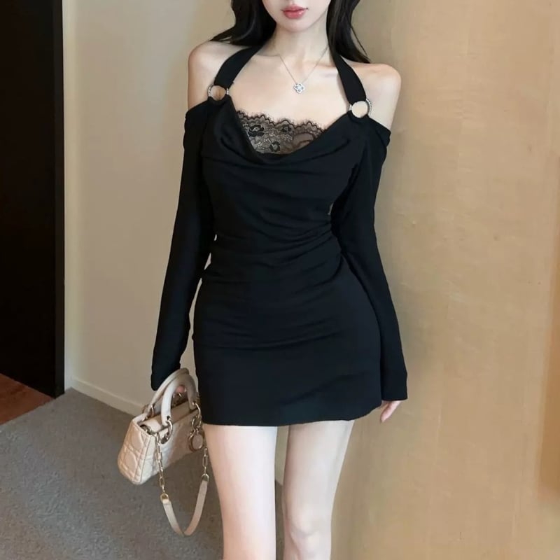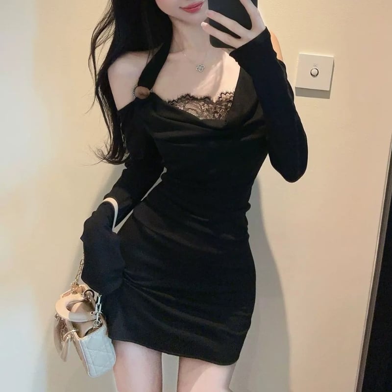 胸元にあしらわれたレースがアクセントになったワンピース。
