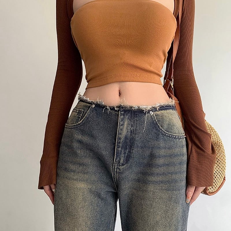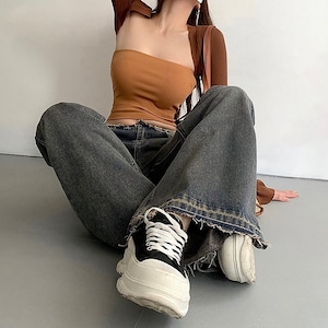 ゆったりとしたワイドシルエットとカットオフデザインがこなれた印象を演出するデニムパンツ。
