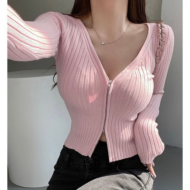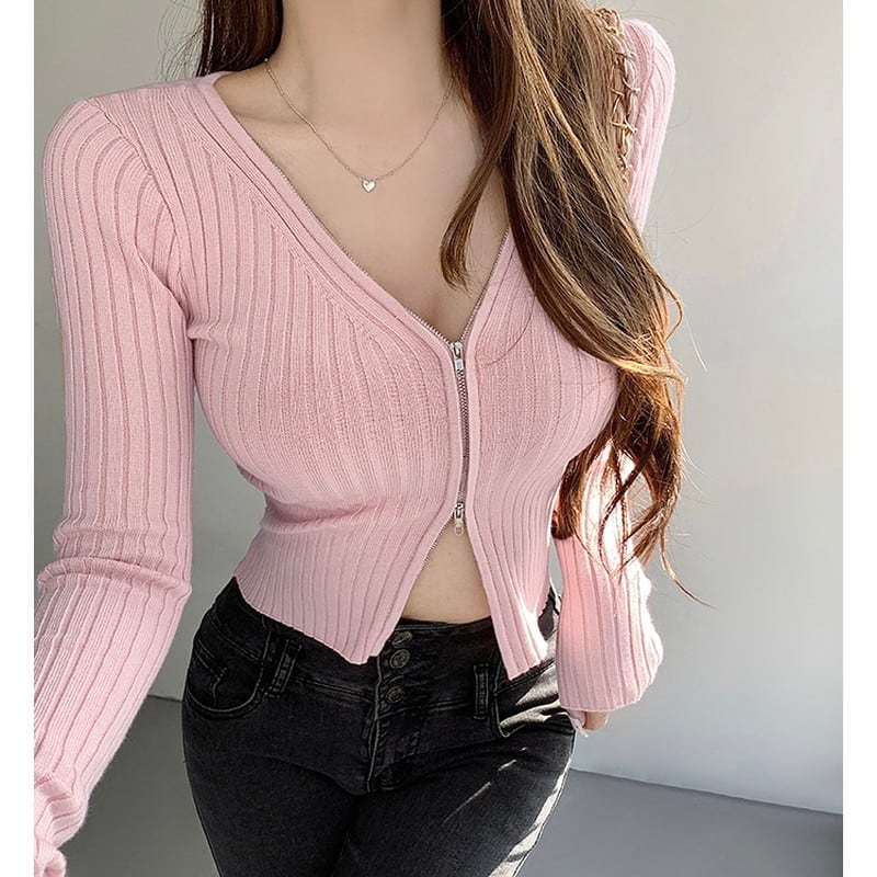 ダブルジップVネックスリムリブニットトップスです。 Vネックとダブルジップのデザインが程よいアクセントとなり、シンプルながらも洗練された印象を演出します。 身体に沿うスリムなシルエットが女性らしいラインを引き立て、縦リブがすっきりとした印象をプラス。 デニムやスカートと合わせてカジュアルに、またはジャケットやアウターと合わせて大人っぽいスタイルにも対応する、幅広いコーディネートに活躍する一着です。 【サイズ】 S:肩幅28cm/バスト64cm/袖丈61cm/着丈51cm M:肩幅30cm/バスト68cm/袖丈63cm/着丈53cm 【カラー】 ・ブラック ・ホワイト ・ブラウン ・ピンク ・グリーン ・グレー 【モデル】 身長:164cm 体重:47kg B/W:80/60 着用サイズ:S *Lavissyで人気のアイテムはこちら♪ https://www.lavissy-fashion.shop/categories/2816592 *新商品入荷中!/SALE情報をcheck https://www.lavissy-fashion.shop/ **ご購入前に必ずお読みください** https://www.lavissy-fashion.shop/blog/2020/07/05/231434 【お届けについて】 こちらの商品は海外店舗より直接発送となる為、 ご入金から10日〜3週間前後で発送致します。 ◆注意事項 ・タイミングによっては 商品在庫切れにより 注文キャンセルとさせていただく恐れもございますので、予めご了承くださいませ。 ・こちらは輸入品となります。日本製とは検品基準が異なる為、 新品未使用品でもごくわずかな汚れや ほつれがある場合もございます。 ・仕入れ工場を変えることがあるため、記載サイズと若干異なる場合がございます。 ・商品の色味は、お手持ちのスマートフォンの画面によって実物と若干異なる場合がございます。 ・イメージ違いやサイズ交換等、お客さまご都合による交換、返品は対応出来かねます。 【お支払方法】 ・クレジットカード決済 (VISA/Master/JCB/AMERICAN EXPRESS) ・キャリア決済 (docomo/au/SoftBank/Y!mobile/UQmobile) ・銀行振込 (三井住友銀行) ・コンビニ決済・Pay-easy ・後払い決済 ーーーーーーーーーーーーーーーーーーーー *Lavissy Instagram https://www.instagram.com/lavissy_official