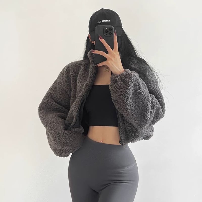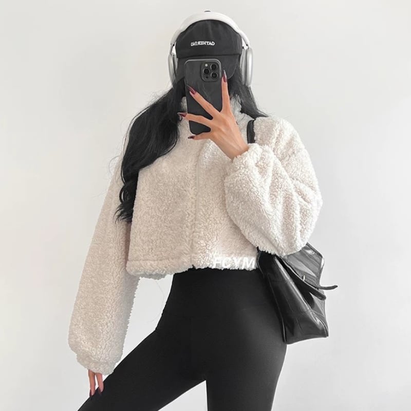 boa fluffily cropped stand-collar jacket la2323