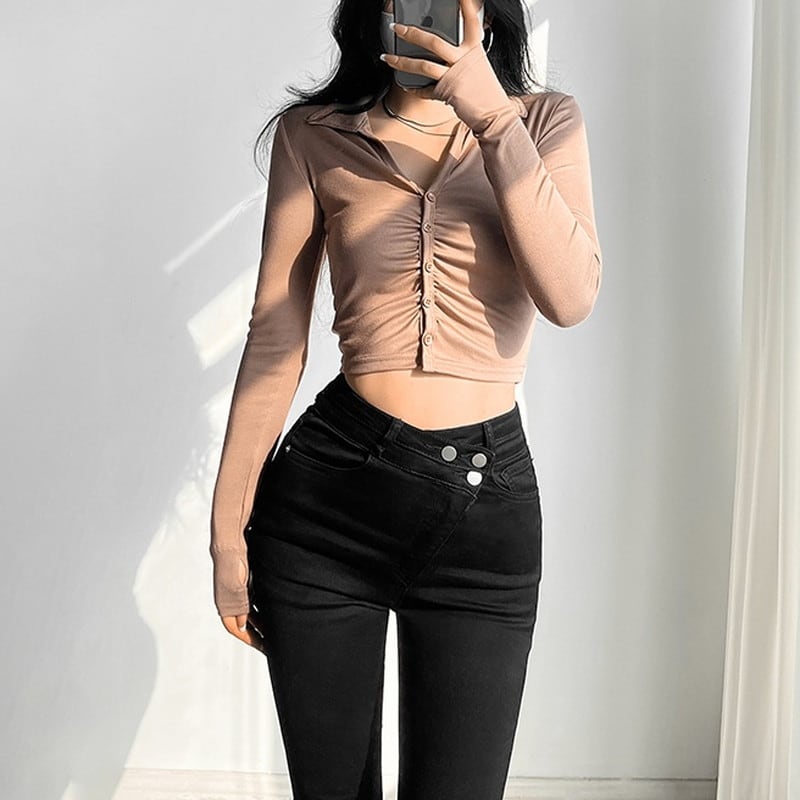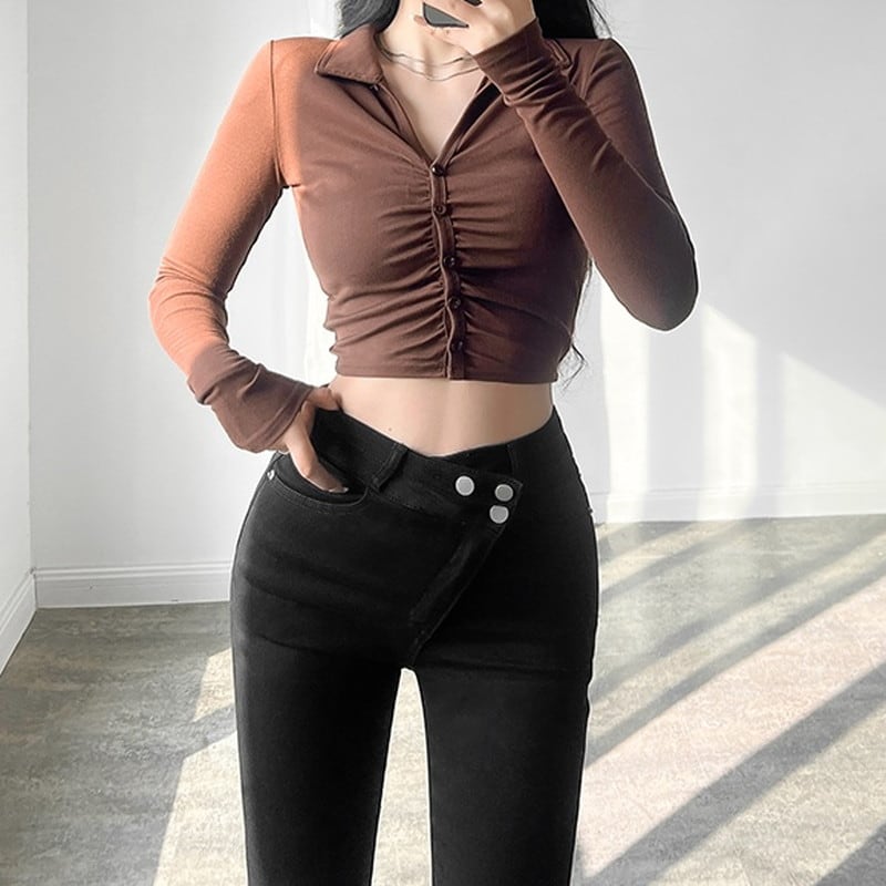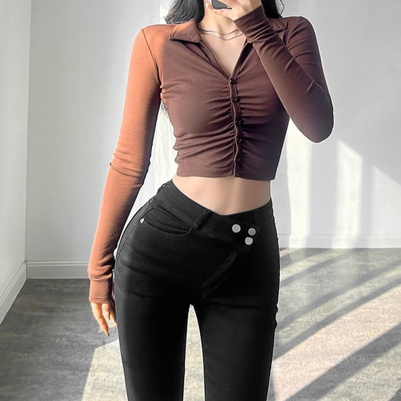 大人っぽさとトレンド感を兼ね備えたポロネックデザインのクロップドトップスです。 フロントのギャザーが女性らしいシルエットを引き立て、コンパクトな丈感でスタイルアップを叶えます。 きちんと感のあるポロネック × セクシーなクロップド丈の絶妙バランス。 デニムやミニスカートと合わせてカジュアルに、スラックスやジャケットと合わせれば大人モードのコーデが完成します。 【サイズ】 S:肩幅32cm/バスト70-94cm/袖丈63cm/着丈45cm M:肩幅33cm/バスト74-98cm/袖丈64cm/着丈46cm 【カラー】 ・ホワイト ・ブラック ・ベージュ ・ブラウン ・ライトグレー ・ダークグレー 【モデル】 身長:163cm 体重:47.5kg B/W:80/60 着用サイズ:S *Lavissyで人気のアイテムはこちら♪ https://www.lavissy-fashion.shop/categories/2816592 *新商品入荷中!/SALE情報をcheck https://www.lavissy-fashion.shop/ **ご購入前に必ずお読みください** https://www.lavissy-fashion.shop/blog/2020/07/05/231434 【お届けについて】 こちらの商品は海外店舗より直接発送となる為、 ご入金から10日〜3週間前後で発送致します。 ◆注意事項 ・タイミングによっては 商品在庫切れにより 注文キャンセルとさせていただく恐れもございますので、予めご了承くださいませ。 ・こちらは輸入品となります。日本製とは検品基準が異なる為、 新品未使用品でもごくわずかな汚れや ほつれがある場合もございます。 ・仕入れ工場を変えることがあるため、記載サイズと若干異なる場合がございます。 ・商品の色味は、お手持ちのスマートフォンの画面によって実物と若干異なる場合がございます。 ・イメージ違いやサイズ交換等、お客さまご都合による交換、返品は対応出来かねます。 【お支払方法】 ・クレジットカード決済 (VISA/Master/JCB/AMERICAN EXPRESS) ・キャリア決済 (docomo/au/SoftBank/Y!mobile/UQmobile) ・銀行振込 (三井住友銀行) ・コンビニ決済・Pay-easy ・後払い決済 ーーーーーーーーーーーーーーーーーーーー *Lavissy Instagram https://www.instagram.com/lavissy_official