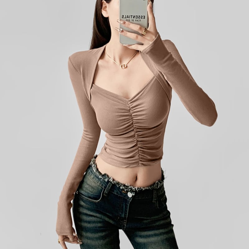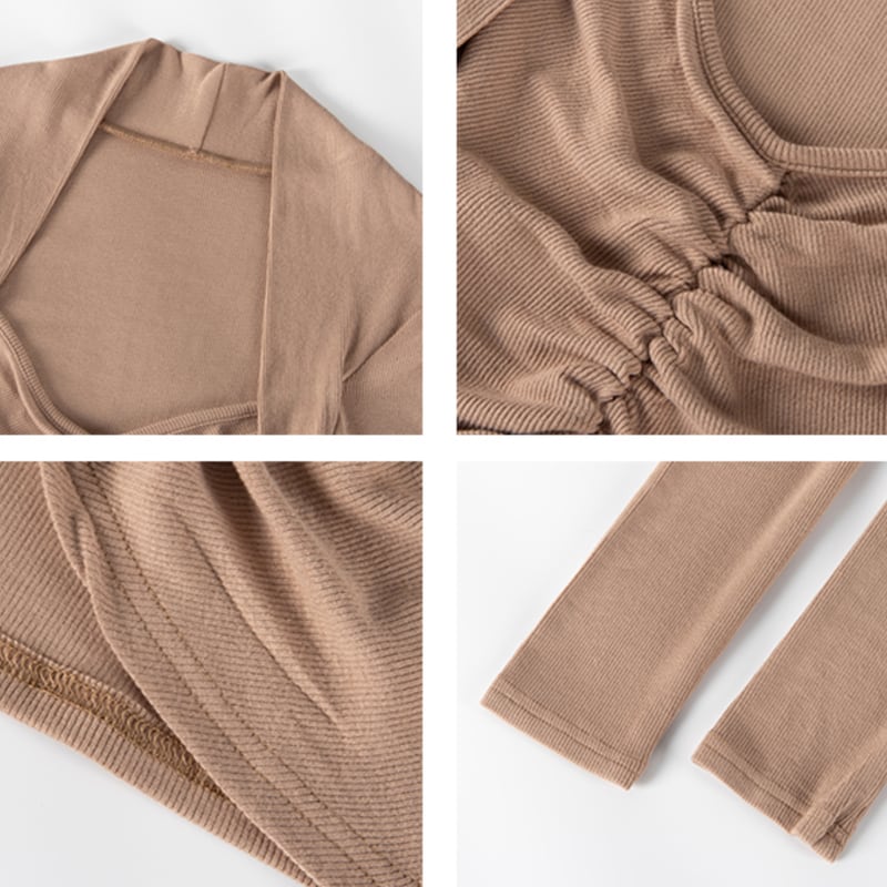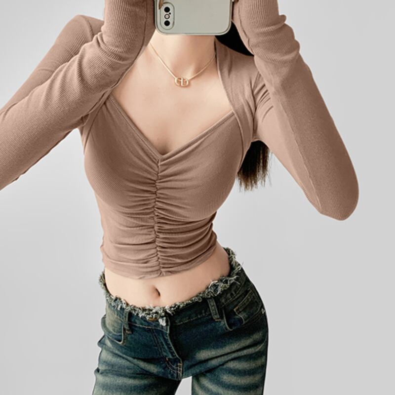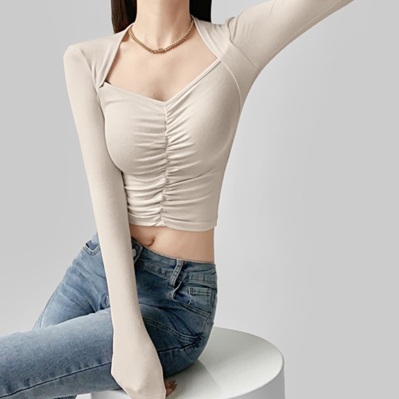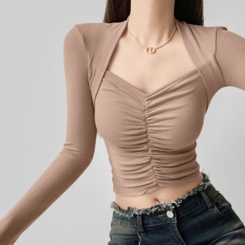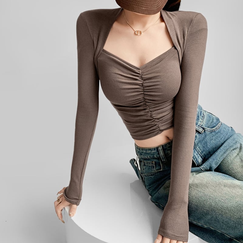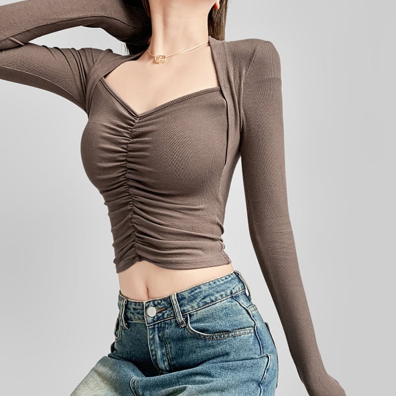 フロントにシャーリングを施したスリムフィットトップス。 深めのネックラインがデコルテをきれいに見せてくれるデザイン。 ショート丈でボトムとのバランスが取りやすいシルエット。 シンプルながらアクセントの効いた一枚です。 【サイズ】 S:肩幅32cm/バスト64cm/袖丈59cm/着丈43cm M:肩幅33cm/バスト68cm/袖丈60cm/着丈44cm 【カラー】 ・ブラウン ・アプリコット ・ベージュ ・ブラック *Lavissyで人気のアイテムはこちら♪ https://www.lavissy-fashion.shop/categories/2816592 *新商品入荷中!/SALE情報をcheck https://www.lavissy-fashion.shop/ **ご購入前に必ずお読みください** https://www.lavissy-fashion.shop/blog/2020/07/05/231434 【お届けについて】 こちらの商品は海外店舗より直接発送となる為、 ご入金から10日〜3週間前後で発送致します。 ◆注意事項 ・タイミングによっては 商品在庫切れにより 注文キャンセルとさせていただく恐れもございますので、予めご了承くださいませ。 ・こちらは輸入品となります。日本製とは検品基準が異なる為、 新品未使用品でもごくわずかな汚れや ほつれがある場合もございます。 ・仕入れ工場を変えることがあるため、記載サイズと若干異なる場合がございます。 ・商品の色味は、お手持ちのスマートフォンの画面によって実物と若干異なる場合がございます。 ・イメージ違いやサイズ交換等、お客さまご都合による交換、返品は対応出来かねます。 【お支払方法】 ・クレジットカード決済 (VISA/Master/JCB/AMERICAN EXPRESS) ・キャリア決済 (docomo/au/SoftBank/Y!mobile/UQmobile) ・銀行振込 (三井住友銀行) ・コンビニ決済・Pay-easy ・後払い決済 ーーーーーーーーーーーーーーーーーーーー *Lavissy Instagram https://www.instagram.com/lavissy_official