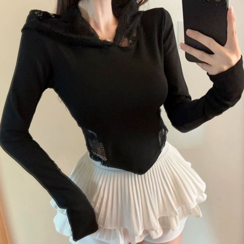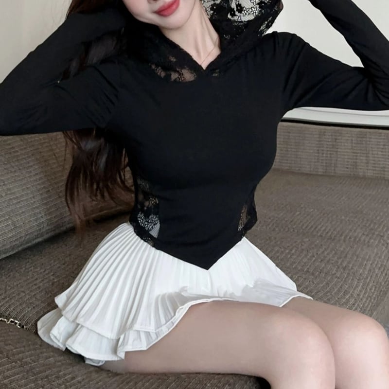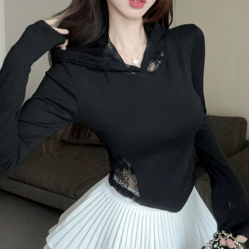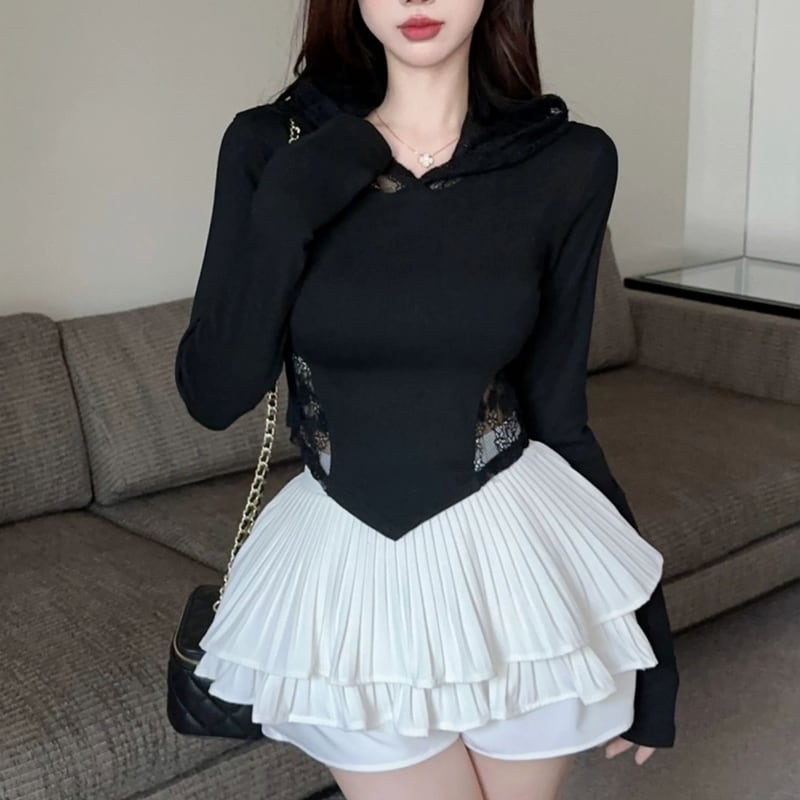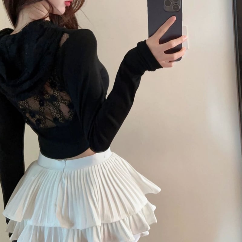 バックスタイルにレースをあしらった長袖パーカー。短い丈感で、スタイルアップ効果も期待できます。普段使いはもちろん、少しドレッシーな装いにも合わせやすい一着です。