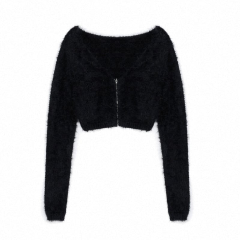 fuzzy zip-up cropped knit top la2392
