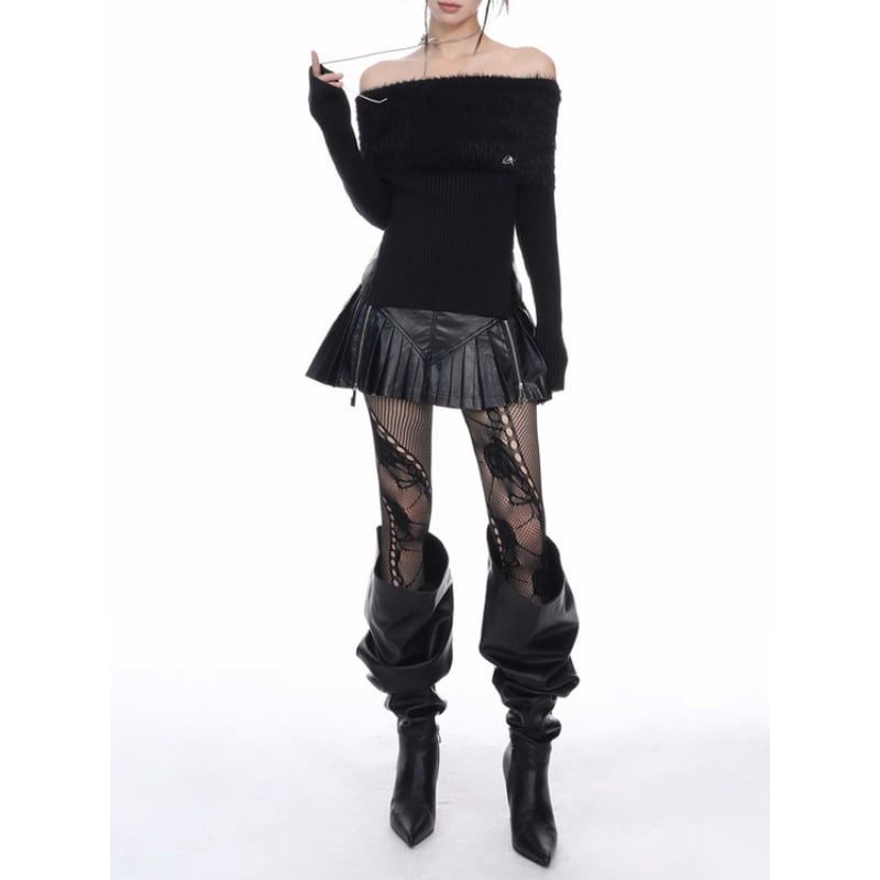 off-shoulder fuzzy knit top la2393