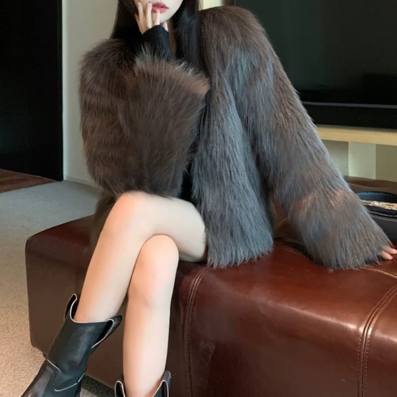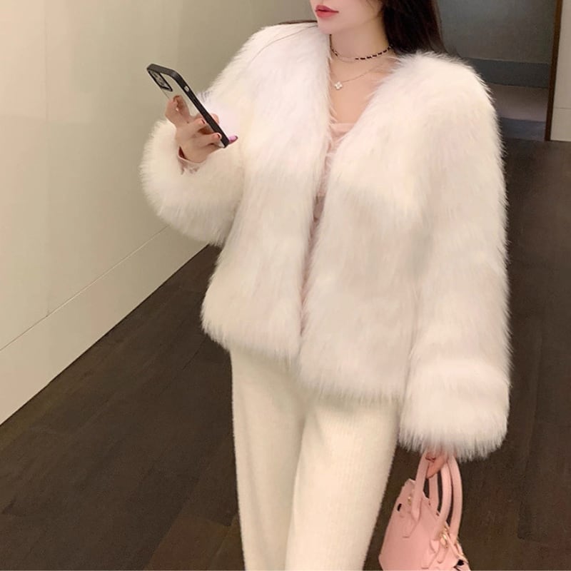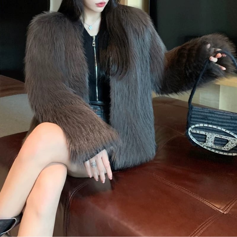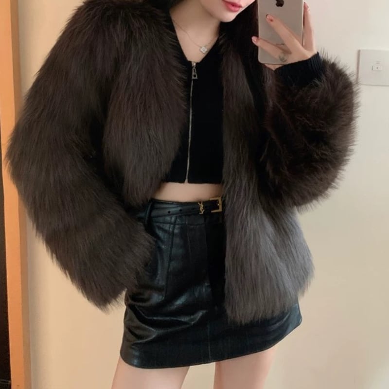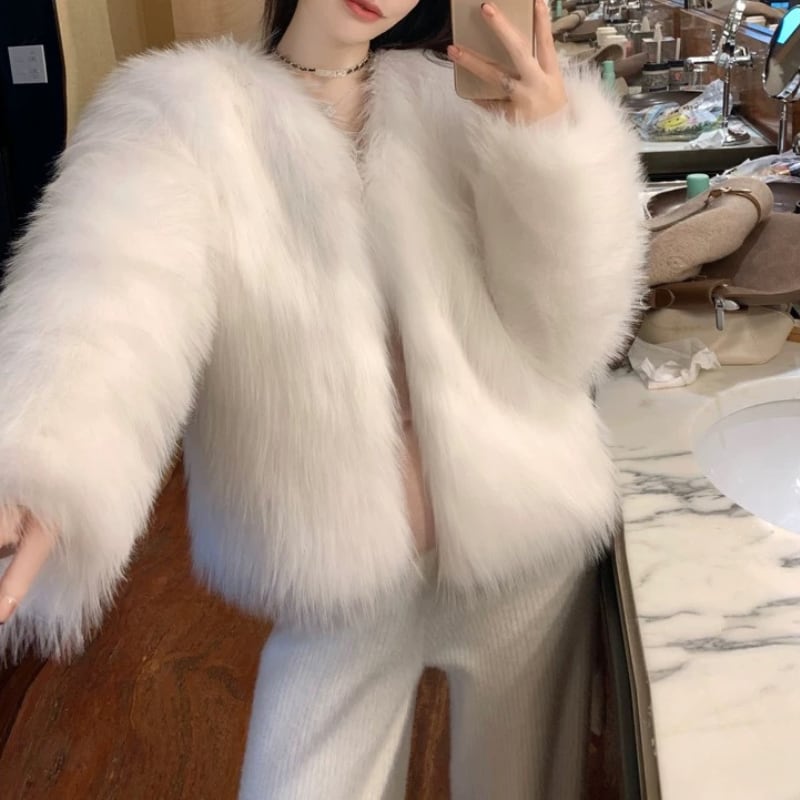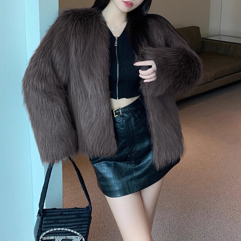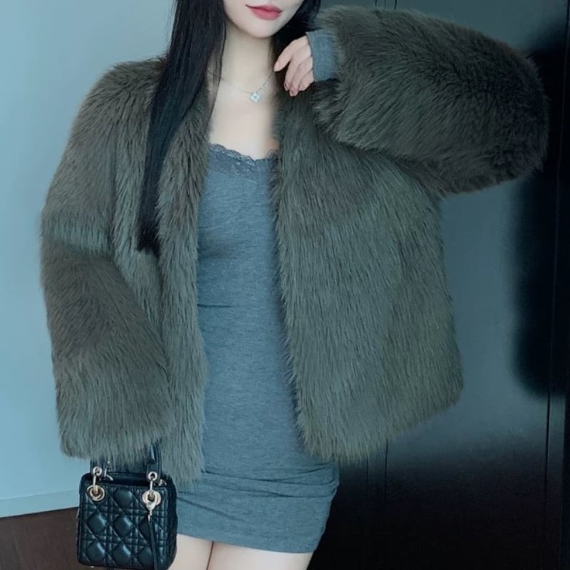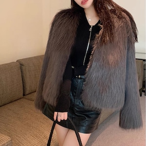 ふわっとしたボリュームが可愛いフェイクファージャケット。