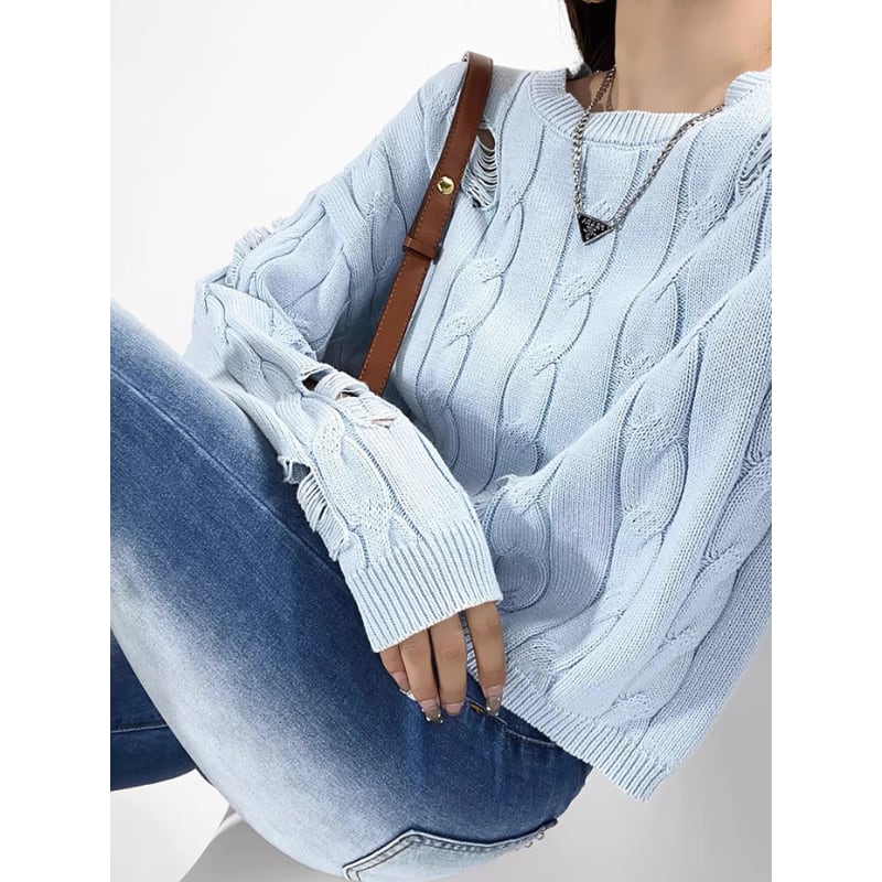 程よくダメージを施したケーブルニットプルオーバー。 ルーズなシルエットとラフなディテールがこなれた印象を演出します。 デニムやミニスカートなど、合わせるボトム次第でカジュアルにもモードにも着こなせます。 【サイズ】 S:肩幅58cm/バスト108cm/袖丈48cm/着丈48cm M:肩幅59cm/バスト112cm/袖丈49cm/着丈49cm 【カラー】 ・グレー ・ブラック ・ピンク ・ブルー 【素材】 ・コットン *Lavissyで人気のアイテムはこちら♪ https://www.lavissy-fashion.shop/categories/2816592 *新商品入荷中!/SALE情報をcheck https://www.lavissy-fashion.shop/ **ご購入前に必ずお読みください** https://www.lavissy-fashion.shop/blog/2020/07/05/231434 【お届けについて】 こちらの商品は海外店舗より直接発送となる為、 ご入金から10日〜3週間前後で発送致します。 ◆注意事項 ・タイミングによっては 商品在庫切れにより 注文キャンセルとさせていただく恐れもございますので、予めご了承くださいませ。 ・こちらは輸入品となります。日本製とは検品基準が異なる為、 新品未使用品でもごくわずかな汚れや ほつれがある場合もございます。 ・仕入れ工場を変えることがあるため、記載サイズと若干異なる場合がございます。 ・商品の色味は、お手持ちのスマートフォンの画面によって実物と若干異なる場合がございます。 ・イメージ違いやサイズ交換等、お客さまご都合による交換、返品は対応出来かねます。 【お支払方法】 ・クレジットカード決済 (VISA/Master/JCB/AMERICAN EXPRESS) ・キャリア決済 (docomo/au/SoftBank/Y!mobile/UQmobile) ・銀行振込 (三井住友銀行) ・コンビニ決済・Pay-easy ・後払い決済 ーーーーーーーーーーーーーーーーーーーー *Lavissy Instagram https://www.instagram.com/lavissy_official