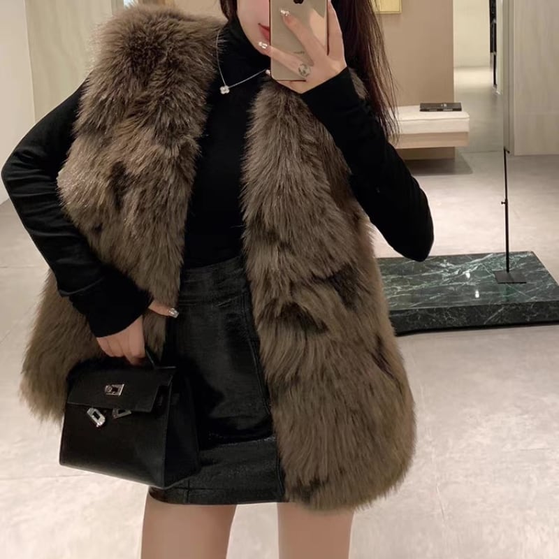ふんわりとした質感が際立つパターンファーベスト。