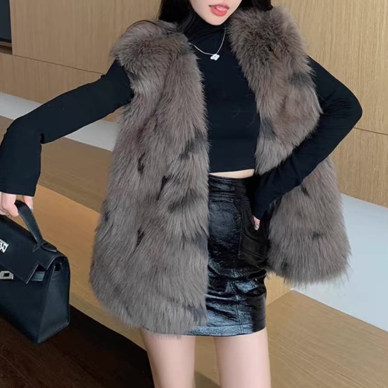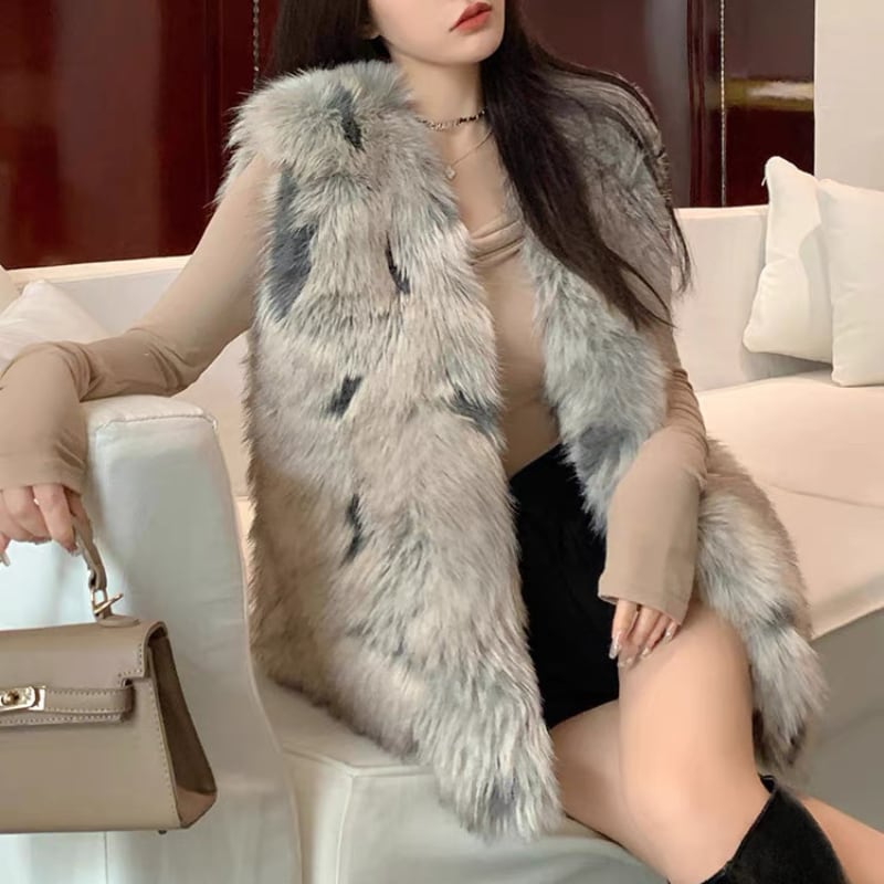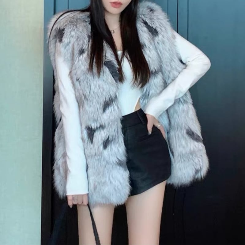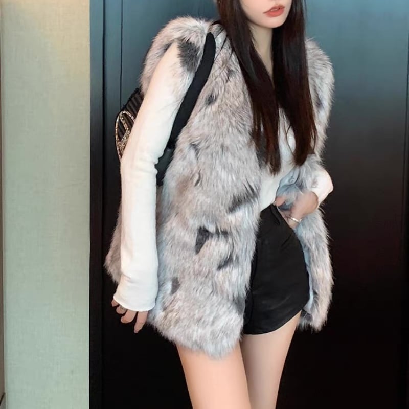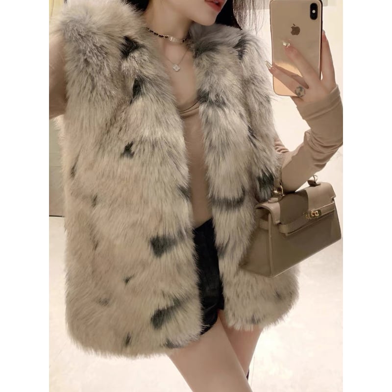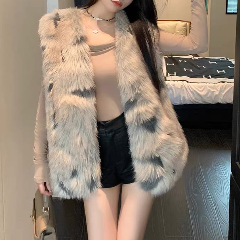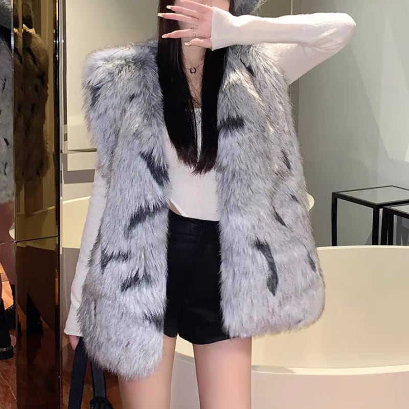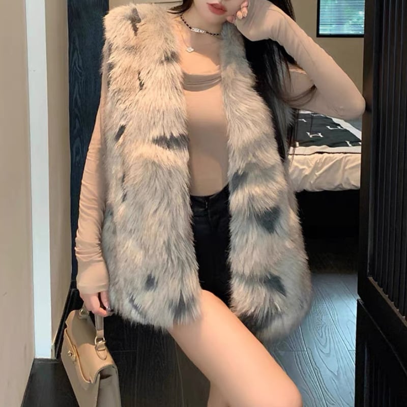 faux fur pattern vest la2464