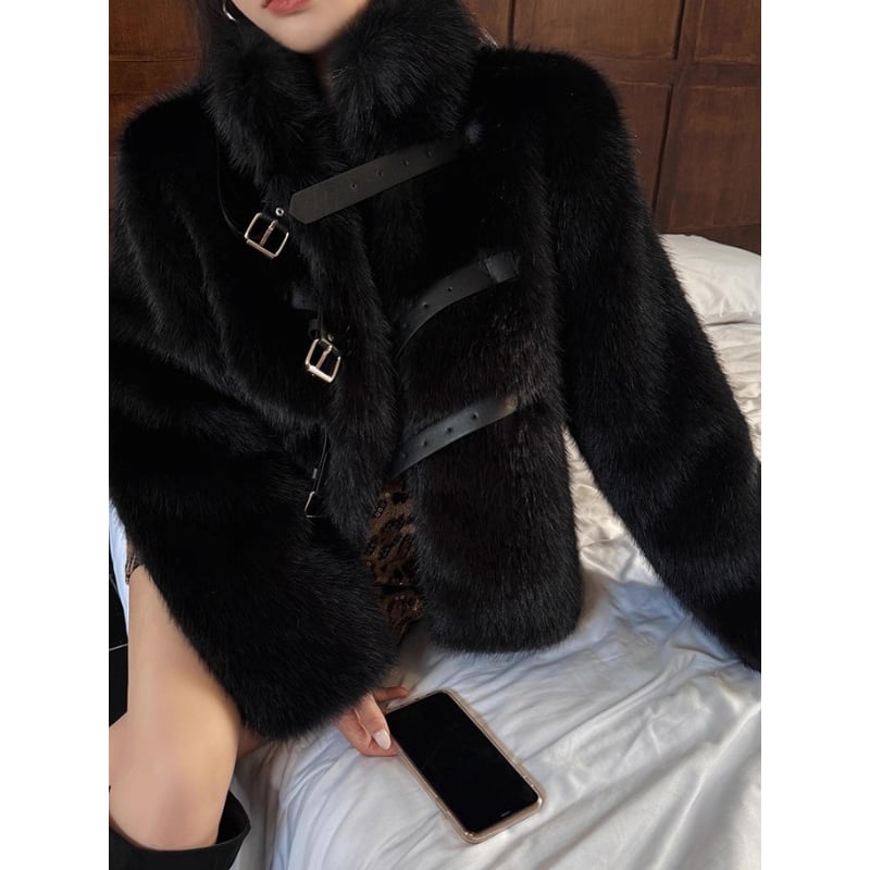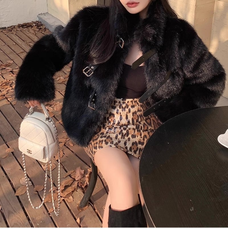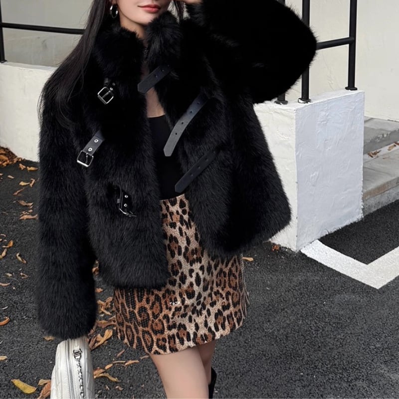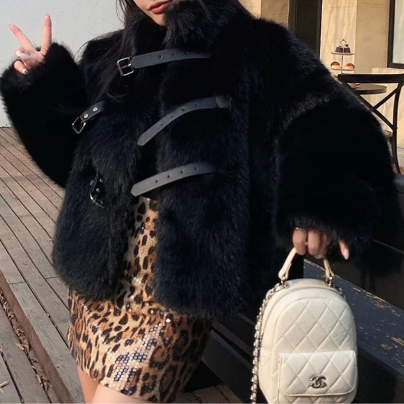 立体感のある毛並みが華やかさを添えつつ、全体をすっきり見せるシルエットに仕上げています。