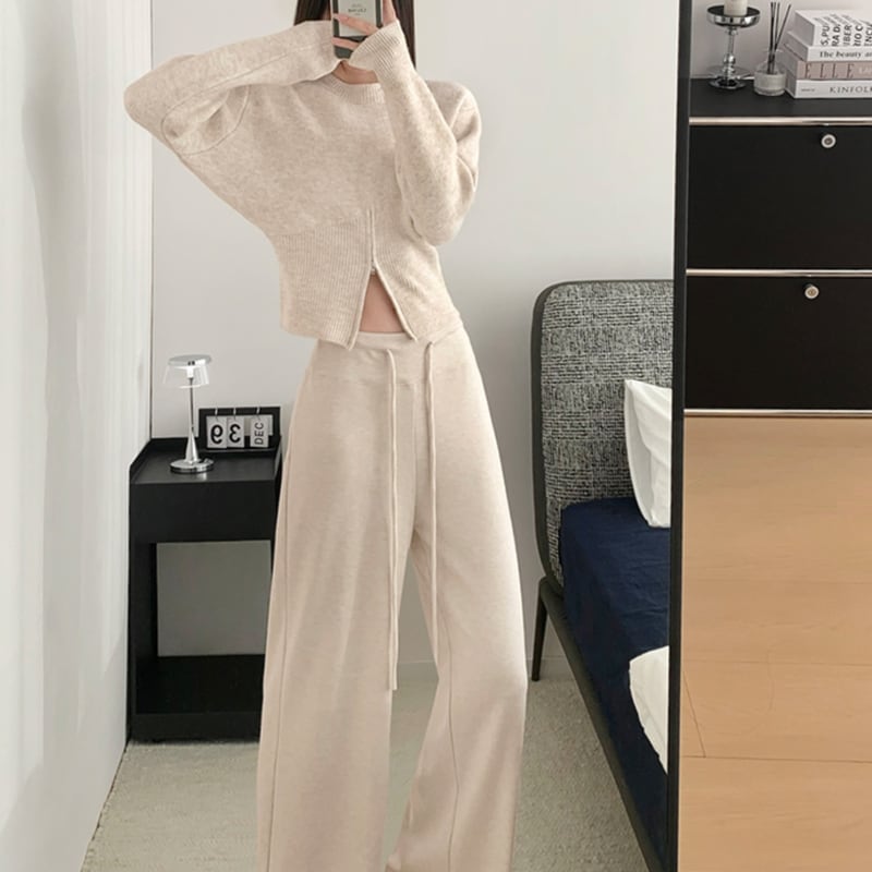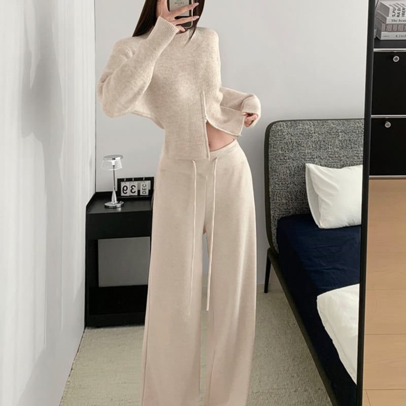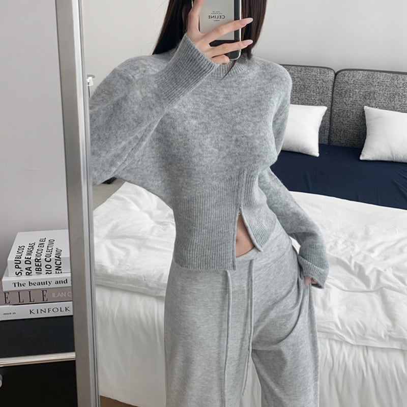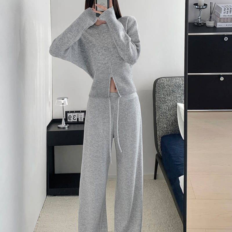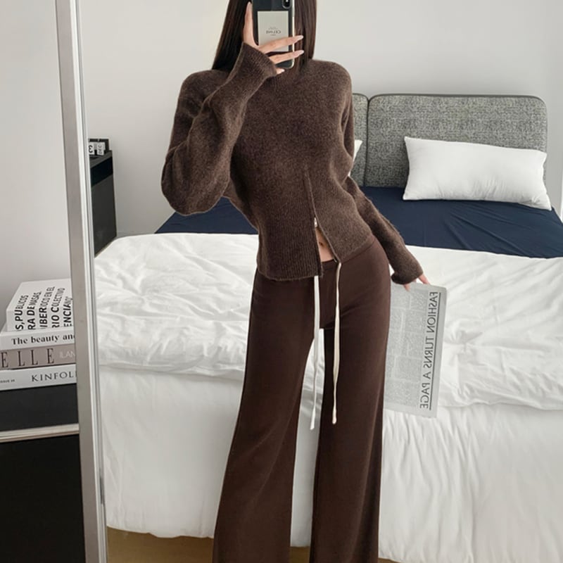 ふんわりとした編地に、裾のリブ切り替えとフロントのスリットジップを合わせたデザインです。
