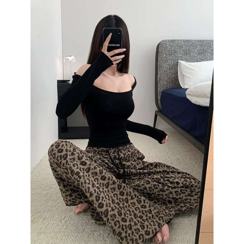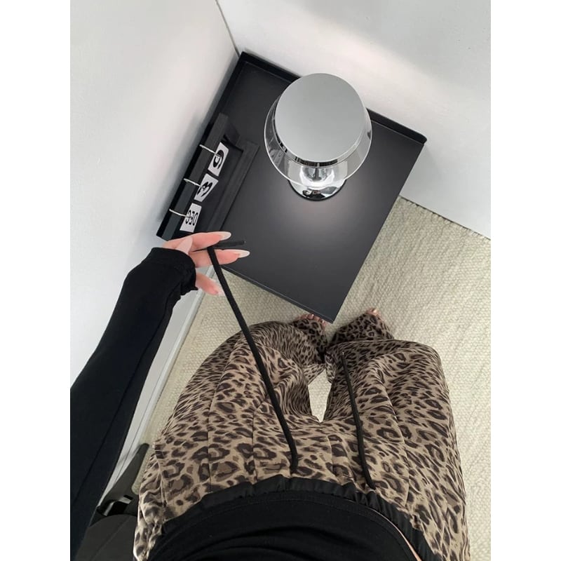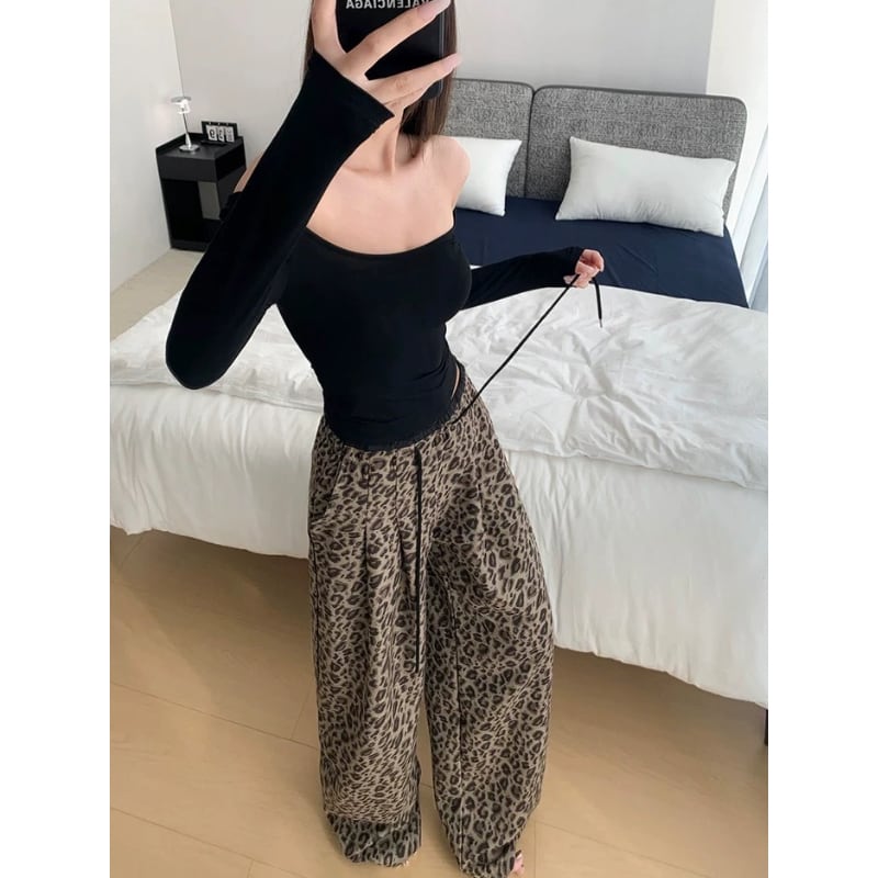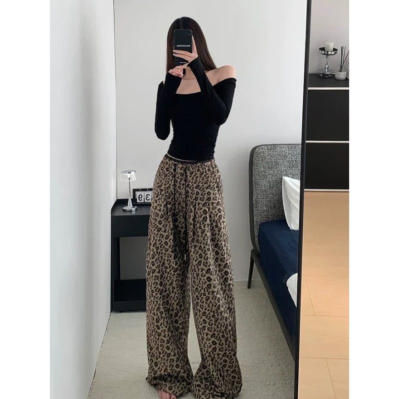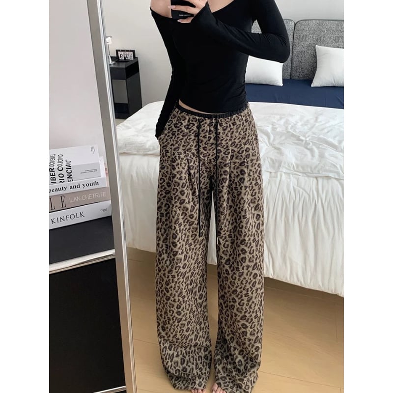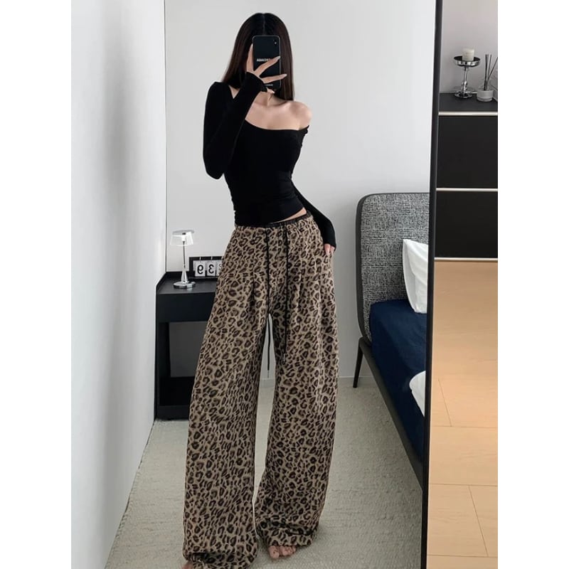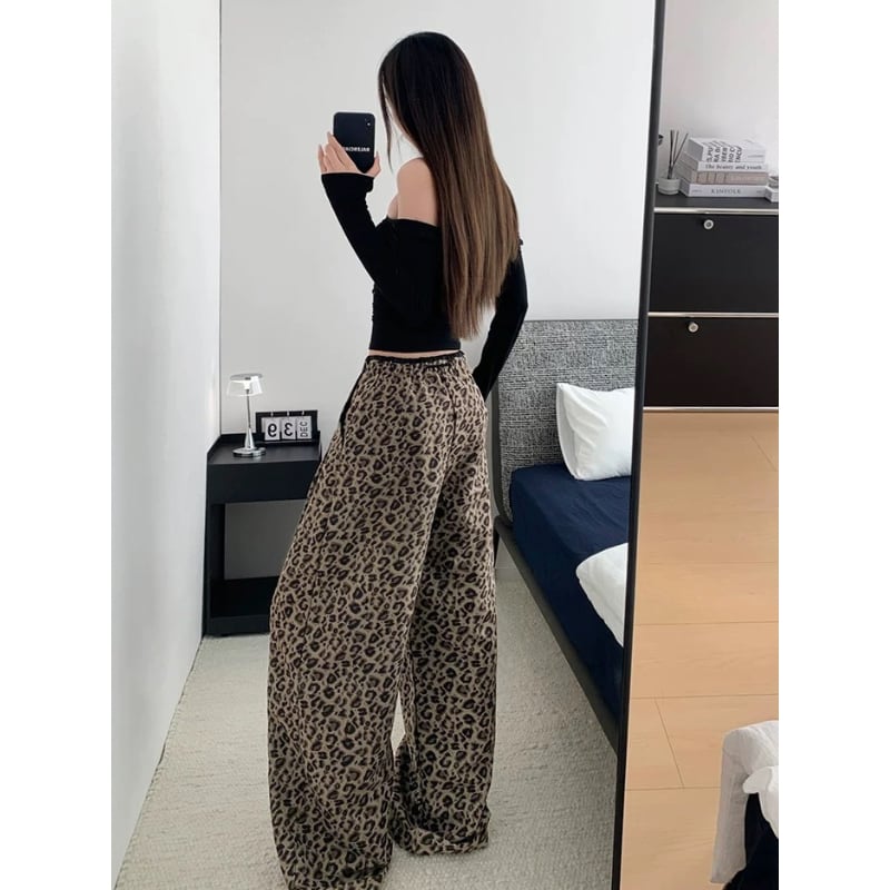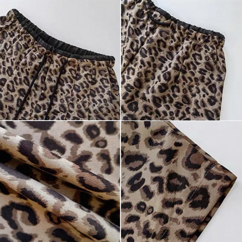 レオパード柄が目を引く、ゆったりとしたシルエットのワイドレッグパンツです。