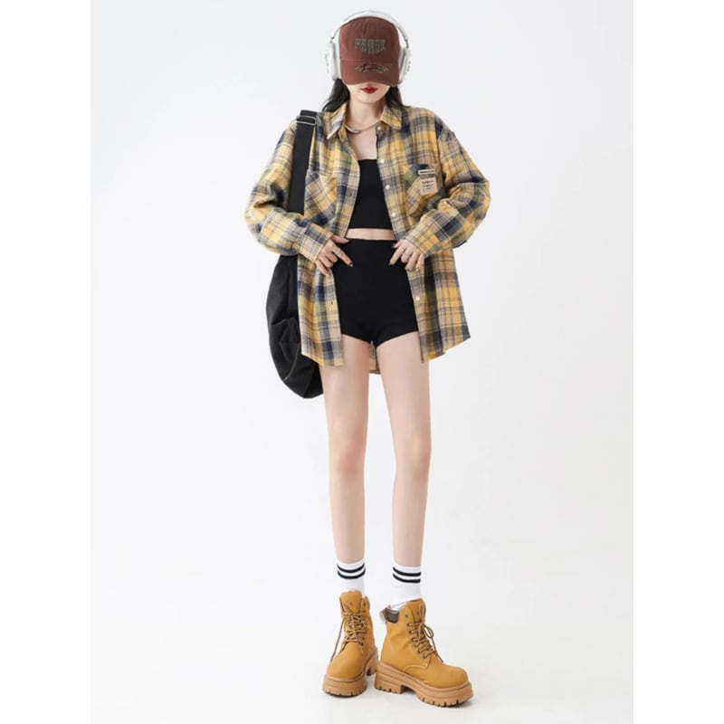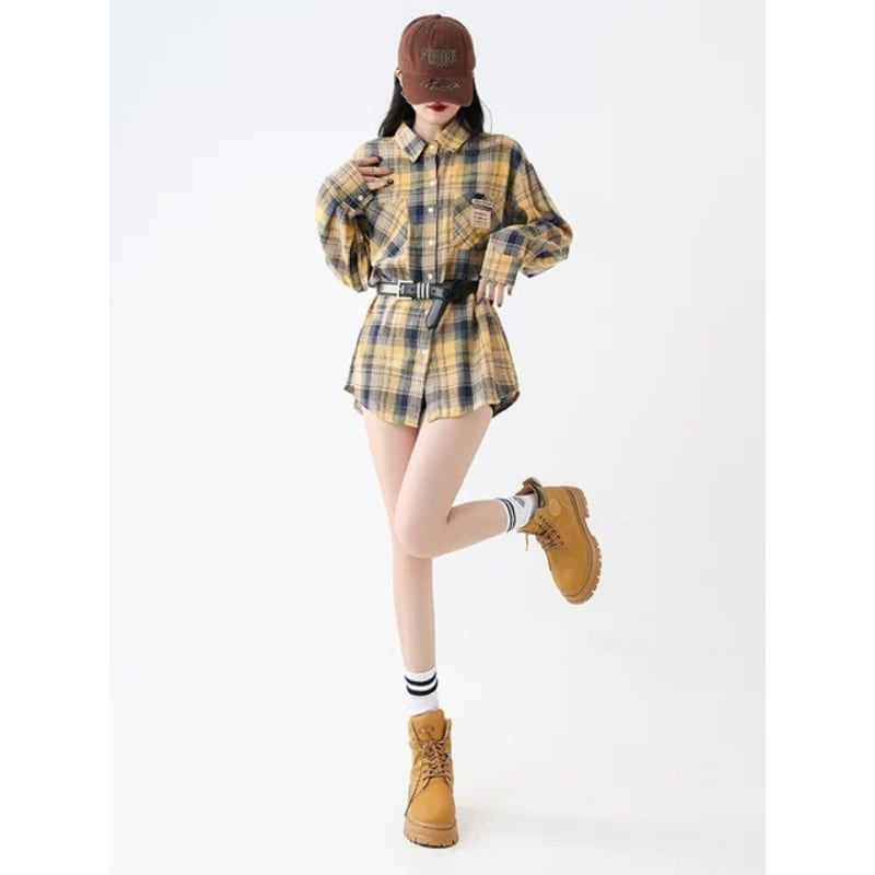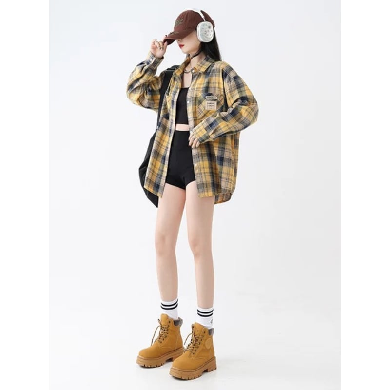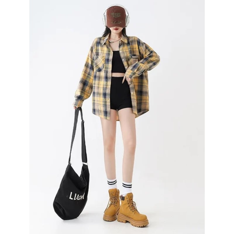 oversized yellow check shirt la2496