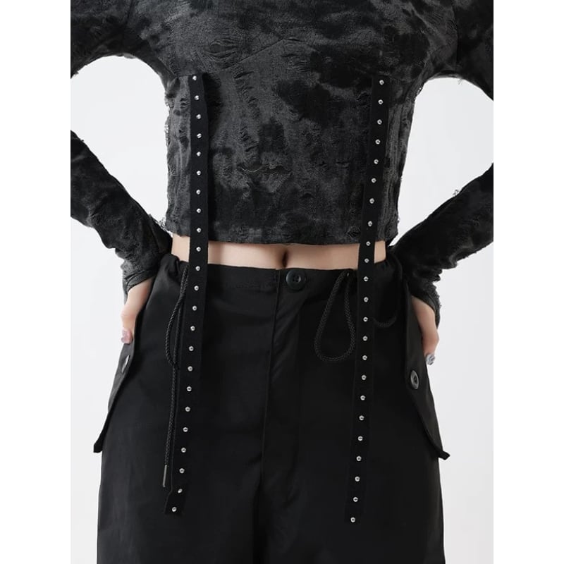 前面には細いストラップとスタッズが並び、デザインのポイントになっています。