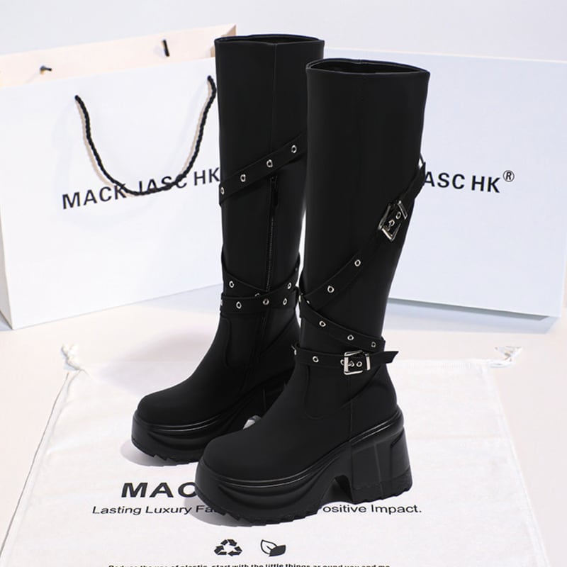 buckle platform chunky heel long boots la2562