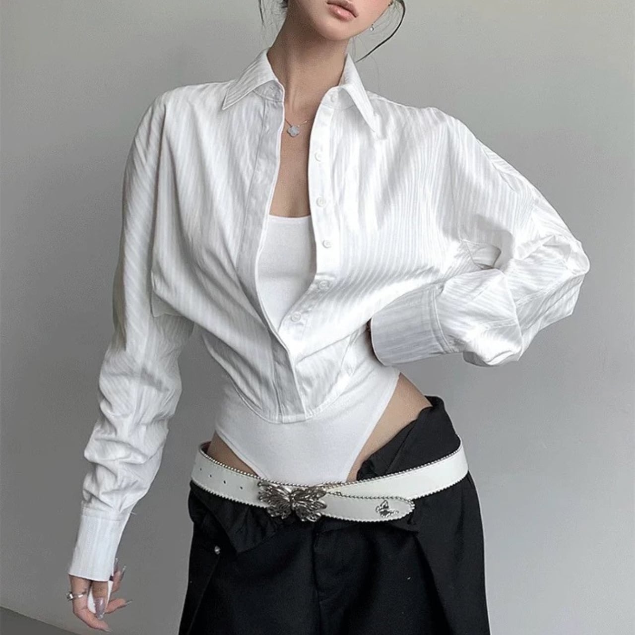 cropped shirt bodysuit top la2537