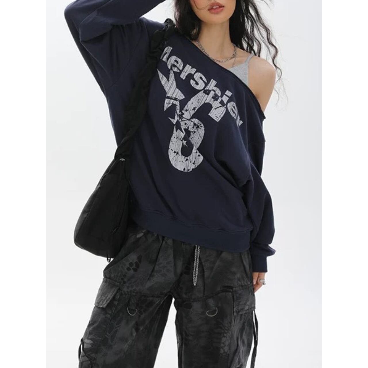 ヴィンテージライクなグラフィックが映える、ワンショル仕様のトップス。