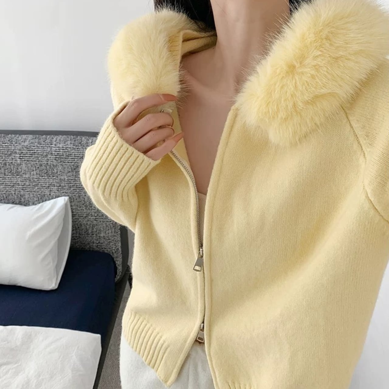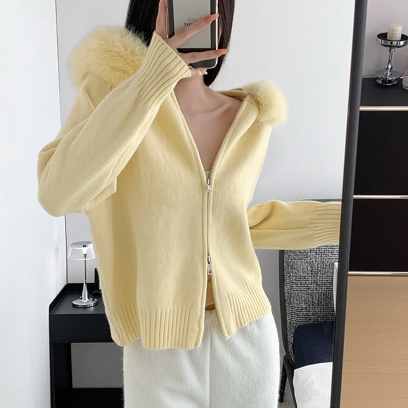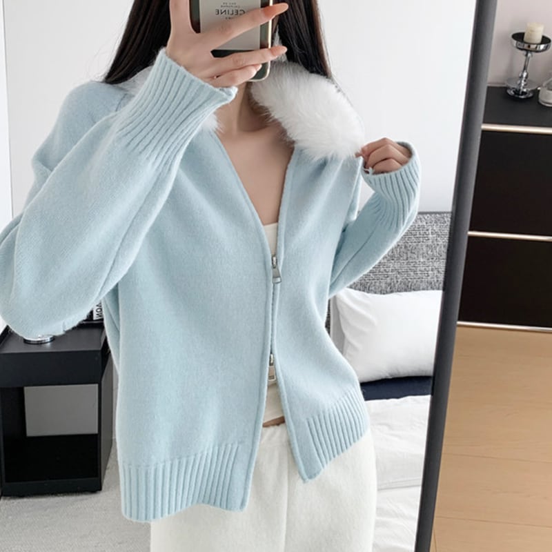 ファーカラーが顔まわりに立体感をつくる、ジップ仕様のニットトップス。 ボディはすっきりしたラインで、ラフになりすぎず着用できます。 軽い羽織としても使える一着です。 【サイズ】 F:バスト102cm/袖丈57cm/着丈55cm 【カラー】 ・ネイビー ・ダークグレー ・アプリコット ・イエロー ・ライトブルー *Lavissyで人気のアイテムはこちら♪ https://www.lavissy-fashion.shop/categories/2816592 *新商品入荷中!/SALE情報をcheck https://www.lavissy-fashion.shop/ **ご購入前に必ずお読みください** https://www.lavissy-fashion.shop/blog/2020/07/05/231434 【お届けについて】 こちらの商品は海外店舗より直接発送となる為、 ご入金から10日〜3週間前後で発送致します。 ◆注意事項 ・タイミングによっては 商品在庫切れにより 注文キャンセルとさせていただく恐れもございますので、予めご了承くださいませ。 ・こちらは輸入品となります。日本製とは検品基準が異なる為、 新品未使用品でもごくわずかな汚れや ほつれがある場合もございます。 ・仕入れ工場を変えることがあるため、記載サイズと若干異なる場合がございます。 ・商品の色味は、お手持ちのスマートフォンの画面によって実物と若干異なる場合がございます。 ・イメージ違いやサイズ交換等、お客さまご都合による交換、返品は対応出来かねます。 【お支払方法】 ・クレジットカード決済 (VISA/Master/JCB/AMERICAN EXPRESS) ・キャリア決済 (docomo/au/SoftBank/Y!mobile/UQmobile) ・銀行振込 (三井住友銀行) ・コンビニ決済・Pay-easy ・後払い決済 ーーーーーーーーーーーーーーーーーーーー *Lavissy Instagram https://www.instagram.com/lavissy_official