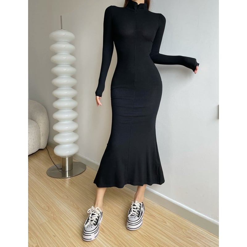 zip highneck rib long one-piece la2587