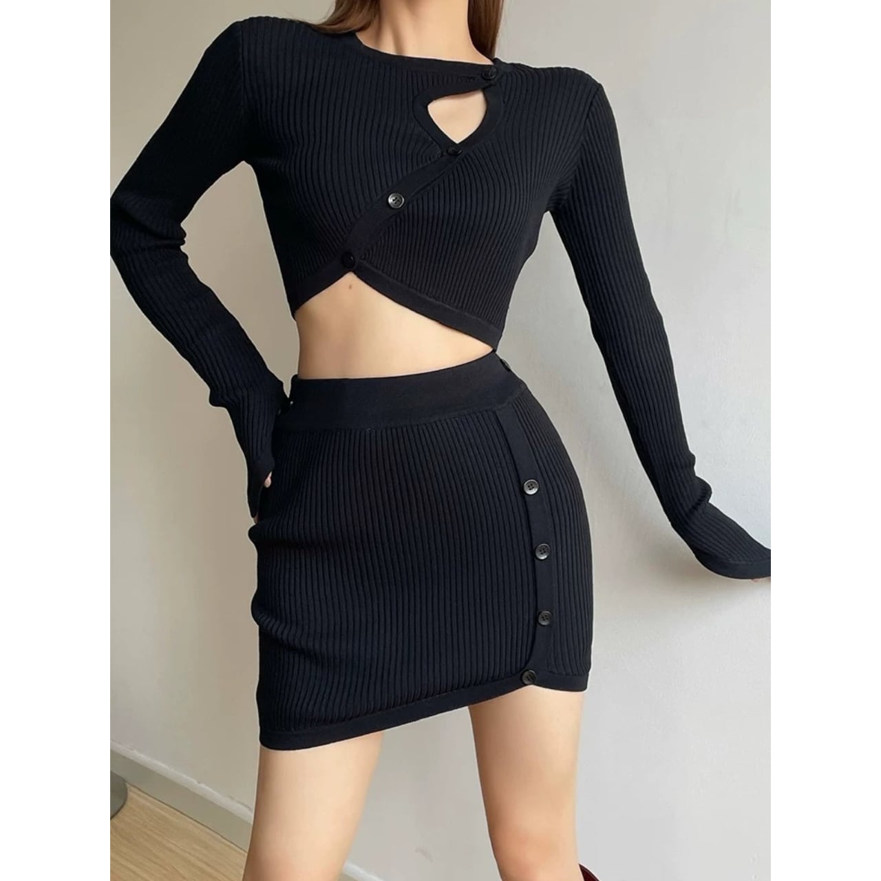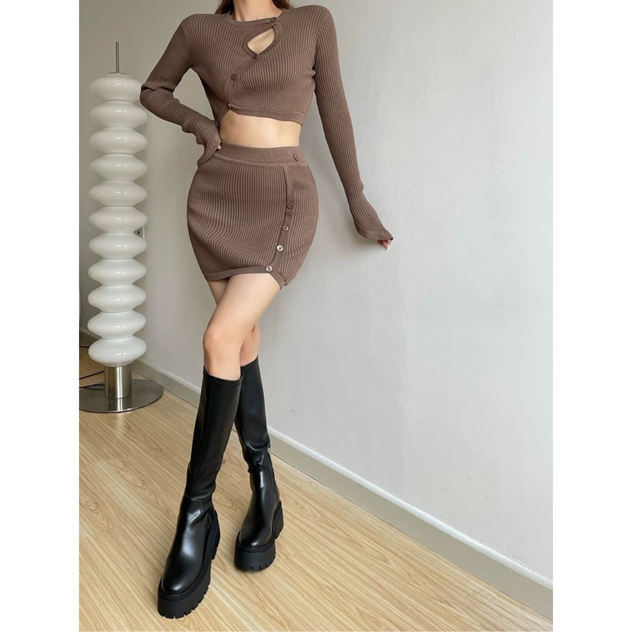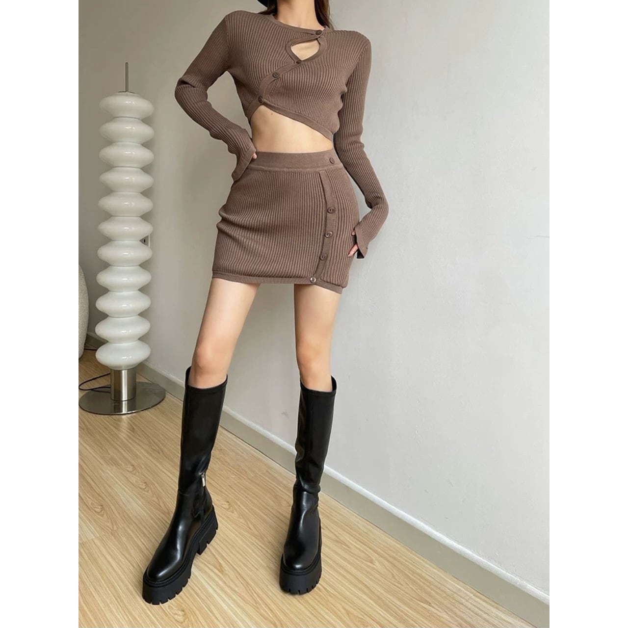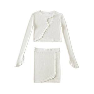 コンパクトなリブ編みで、体のラインをきれいに拾うセットアップ。 程よく厚みのある編地で、リブの立体感が引き立ちます。 トップス単体でも使いやすい、一枚です。 【サイズ】 ・トップス S:肩幅31cm/バスト76cm/袖丈64cm/着丈38cm M:肩幅33cm/バスト80cm/袖丈66cm/着丈40cm ・スカート S:ウエスト31cm/着丈41cm/裾幅33cm M:ウエスト33cm/着丈43cm/裾幅35cm 【カラー】 ・ブラック ・ホワイト ・ブラウン 【素材】 ・コットン 【モデル】 身長:165cm 体重:46.5kg B/W:86/65 着用サイズ:S *Lavissyで人気のアイテムはこちら♪ https://www.lavissy-fashion.shop/categories/2816592 *新商品入荷中!/SALE情報をcheck https://www.lavissy-fashion.shop/ **ご購入前に必ずお読みください** https://www.lavissy-fashion.shop/blog/2020/07/05/231434 【お届けについて】 こちらの商品は海外店舗より直接発送となる為、 ご入金から10日〜3週間前後で発送致します。 ◆注意事項 ・タイミングによっては 商品在庫切れにより 注文キャンセルとさせていただく恐れもございますので、予めご了承くださいませ。 ・こちらは輸入品となります。日本製とは検品基準が異なる為、 新品未使用品でもごくわずかな汚れや ほつれがある場合もございます。 ・仕入れ工場を変えることがあるため、記載サイズと若干異なる場合がございます。 ・商品の色味は、お手持ちのスマートフォンの画面によって実物と若干異なる場合がございます。 ・イメージ違いやサイズ交換等、お客さまご都合による交換、返品は対応出来かねます。 【お支払方法】 ・クレジットカード決済 (VISA/Master/JCB/AMERICAN EXPRESS) ・キャリア決済 (docomo/au/SoftBank/Y!mobile/UQmobile) ・銀行振込 (三井住友銀行) ・コンビニ決済・Pay-easy ・後払い決済 ーーーーーーーーーーーーーーーーーーーー *Lavissy Instagram https://www.instagram.com/lavissy_official