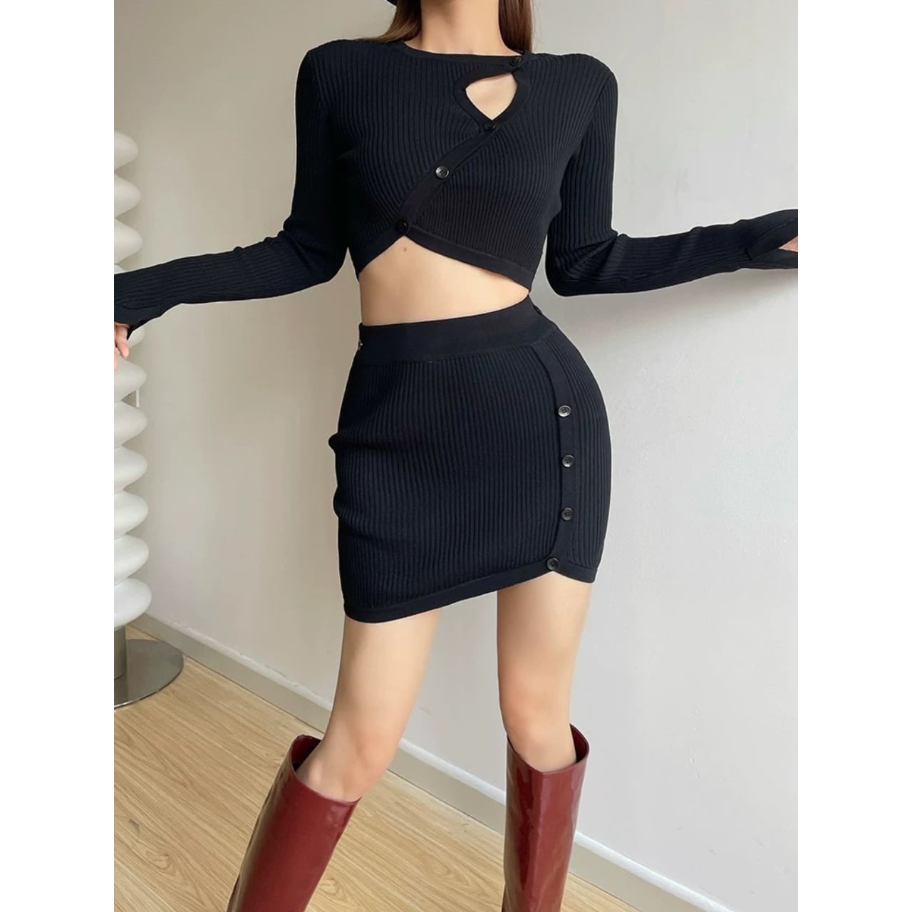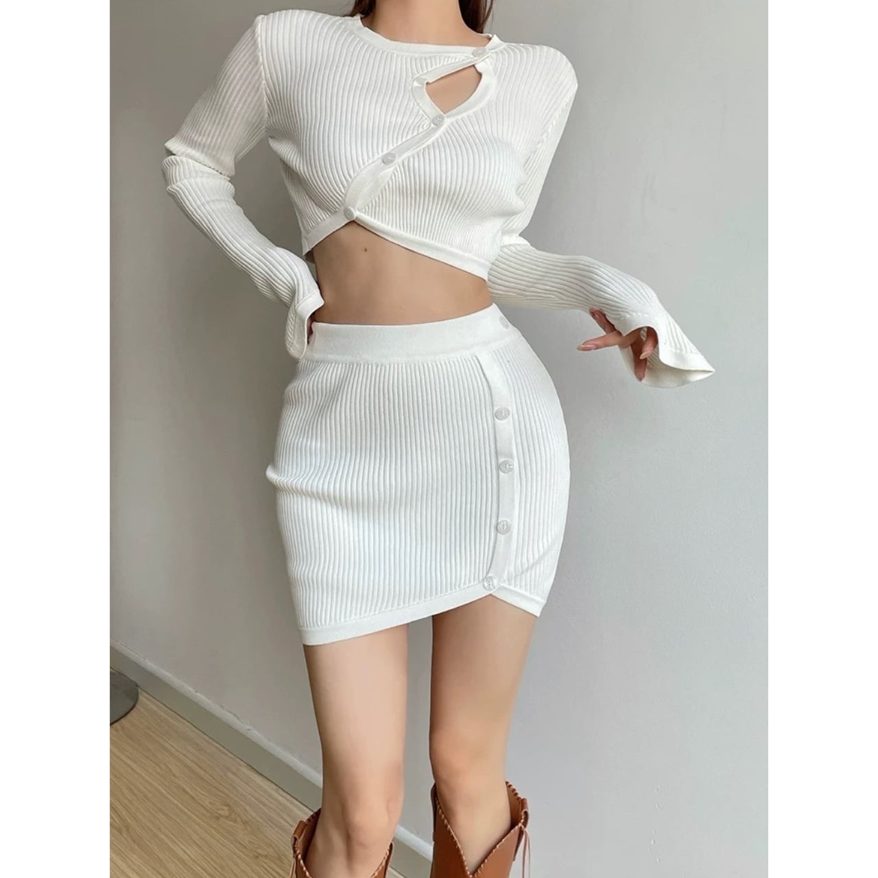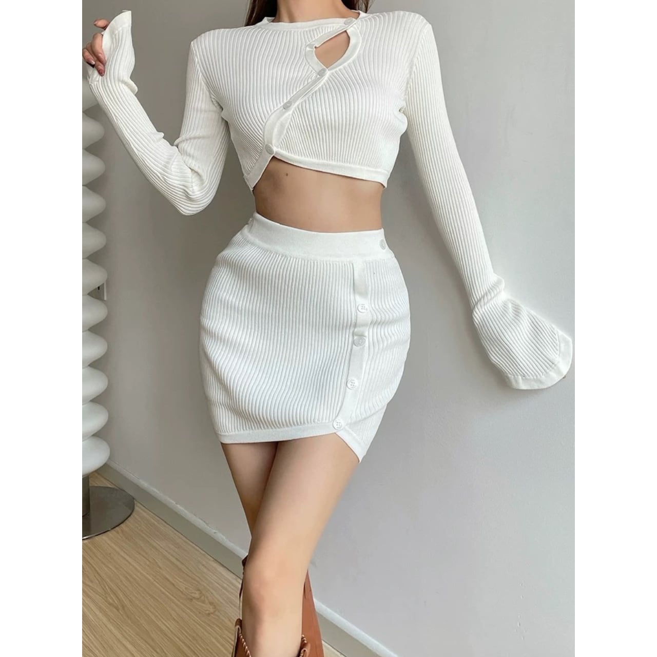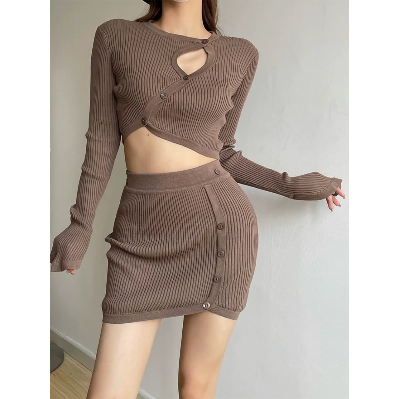 コンパクトなリブ編みで、体のラインをきれいに拾うセットアップ。 程よく厚みのある編地で、リブの立体感が引き立ちます。 トップス単体でも使いやすい、一枚です。 【サイズ】 ・トップス S:肩幅31cm/バスト76cm/袖丈64cm/着丈38cm M:肩幅33cm/バスト80cm/袖丈66cm/着丈40cm ・スカート S:ウエスト31cm/着丈41cm/裾幅33cm M:ウエスト33cm/着丈43cm/裾幅35cm 【カラー】 ・ブラック ・ホワイト ・ブラウン 【素材】 ・コットン 【モデル】 身長:165cm 体重:46.5kg B/W:86/65 着用サイズ:S *Lavissyで人気のアイテムはこちら♪ https://www.lavissy-fashion.shop/categories/2816592 *新商品入荷中!/SALE情報をcheck https://www.lavissy-fashion.shop/ **ご購入前に必ずお読みください** https://www.lavissy-fashion.shop/blog/2020/07/05/231434 【お届けについて】 こちらの商品は海外店舗より直接発送となる為、 ご入金から10日〜3週間前後で発送致します。 ◆注意事項 ・タイミングによっては 商品在庫切れにより 注文キャンセルとさせていただく恐れもございますので、予めご了承くださいませ。 ・こちらは輸入品となります。日本製とは検品基準が異なる為、 新品未使用品でもごくわずかな汚れや ほつれがある場合もございます。 ・仕入れ工場を変えることがあるため、記載サイズと若干異なる場合がございます。 ・商品の色味は、お手持ちのスマートフォンの画面によって実物と若干異なる場合がございます。 ・イメージ違いやサイズ交換等、お客さまご都合による交換、返品は対応出来かねます。 【お支払方法】 ・クレジットカード決済 (VISA/Master/JCB/AMERICAN EXPRESS) ・キャリア決済 (docomo/au/SoftBank/Y!mobile/UQmobile) ・銀行振込 (三井住友銀行) ・コンビニ決済・Pay-easy ・後払い決済 ーーーーーーーーーーーーーーーーーーーー *Lavissy Instagram https://www.instagram.com/lavissy_official